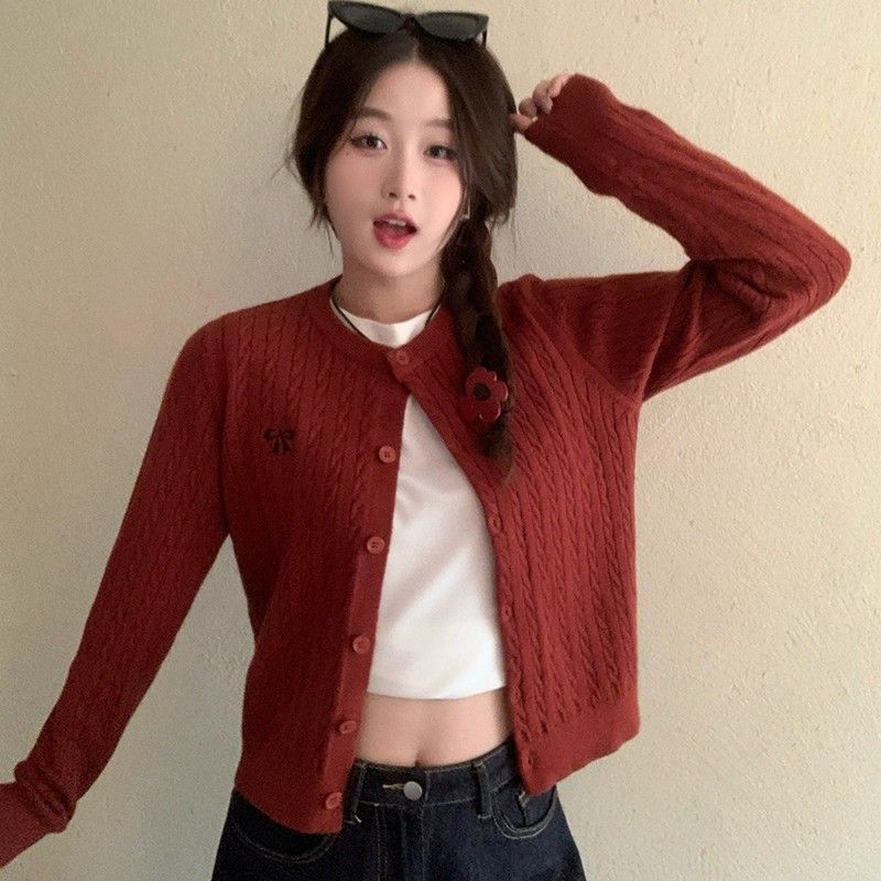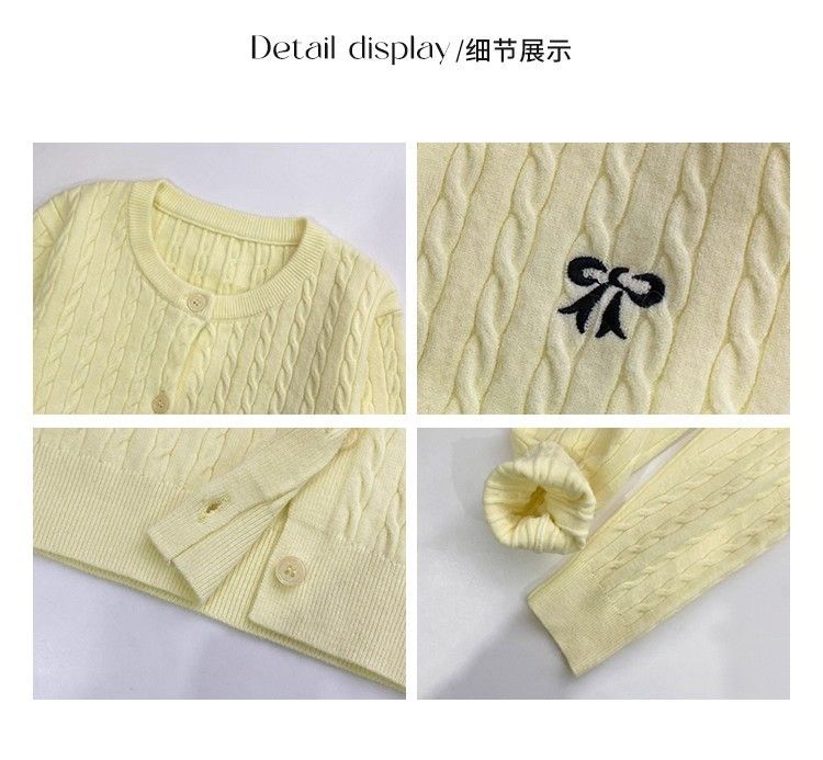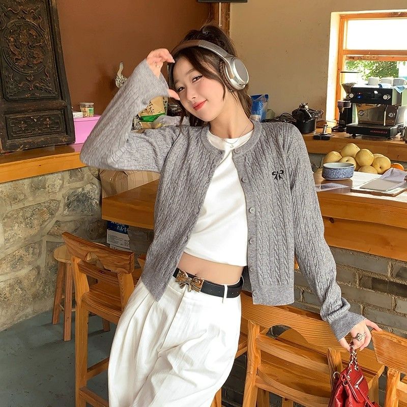 오픈 가디건 니트 2026 새로운 나비 매듭 맨위 봄 가을 고급 꽈배기 연령 감소 재킷 자수 스웨터