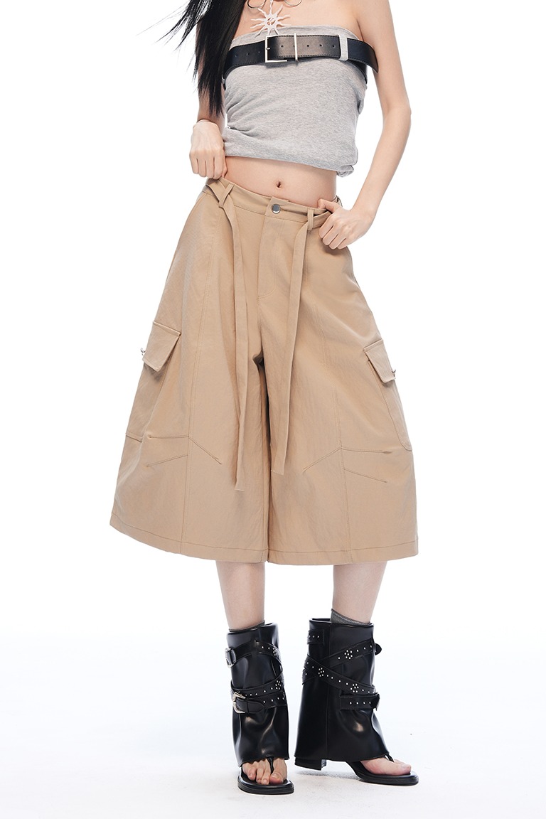 실사 카키 색 여름 새로운 주머니 넓은 다리 워크웨어 팬츠 여성 2026 한국 스타일 하이웨이스트 루즈핏 캐주얼 7부 바지