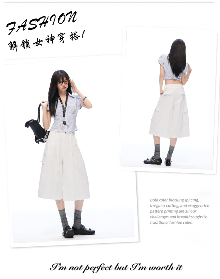 실사 새로운 아메리칸 디자인 센스 작은 키 캐주얼 여름 부드러운 얇은 분할선 루즈핏 와이드 레그 팬츠