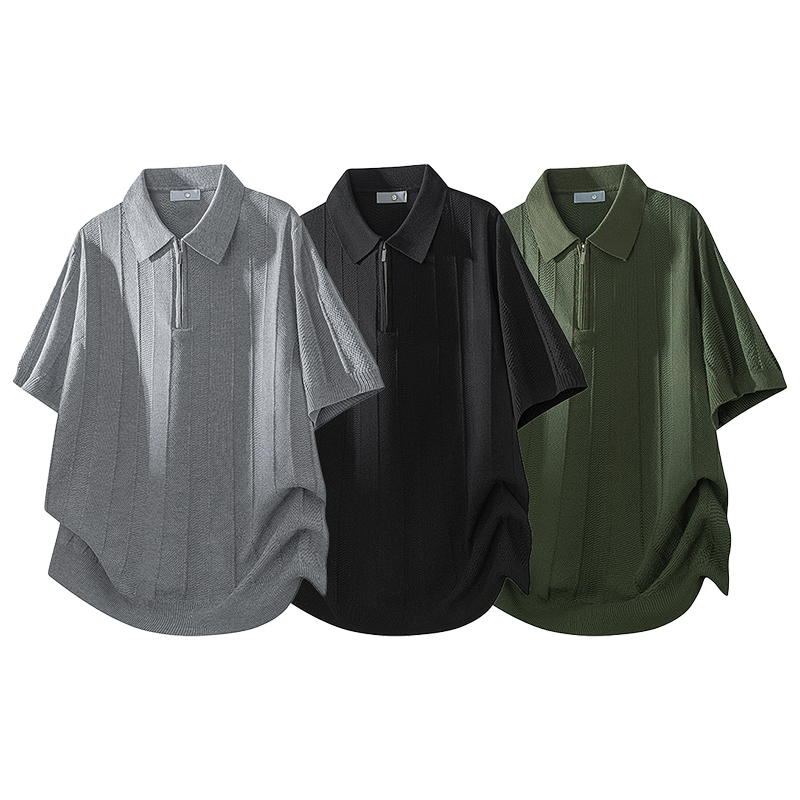 실사 여름 새로운 하프 지퍼 폴로 칼라 POLO 셔츠 남자 복잡한 고대 돈 바람 반팔 니트 맨위