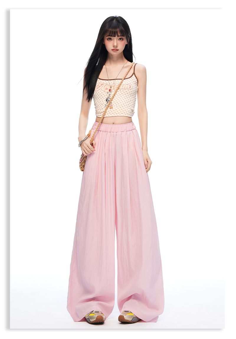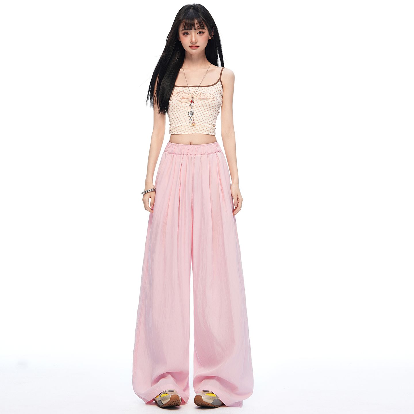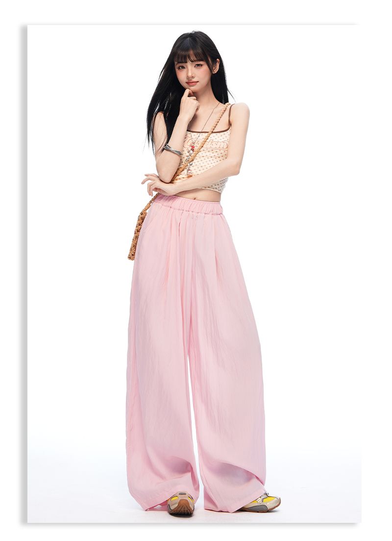 실사 핑크색 느긋한 바람 넓은 다리 속도 건조한 배기 바지 여성 여름 얇고 가벼운 하이웨이스트 펌프 로프 조거 캐주얼 운동 바지