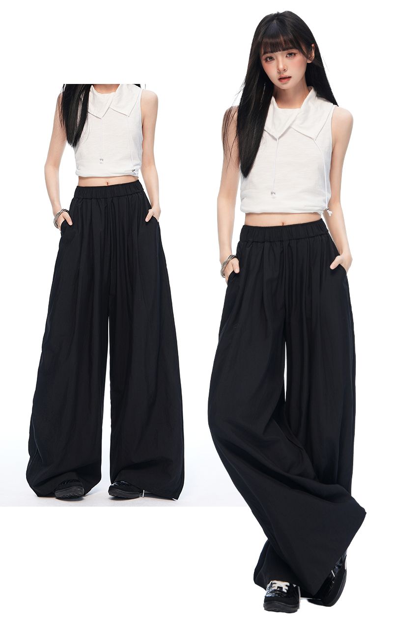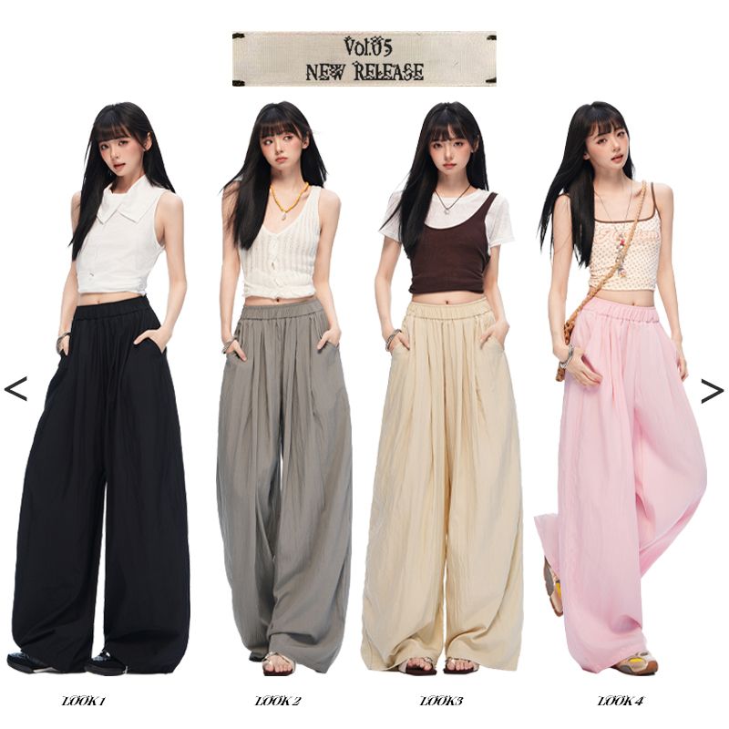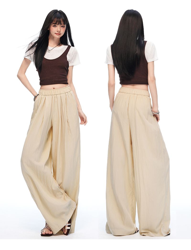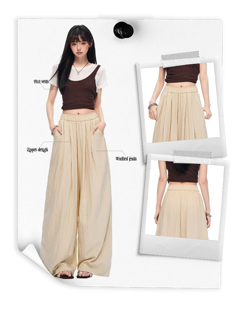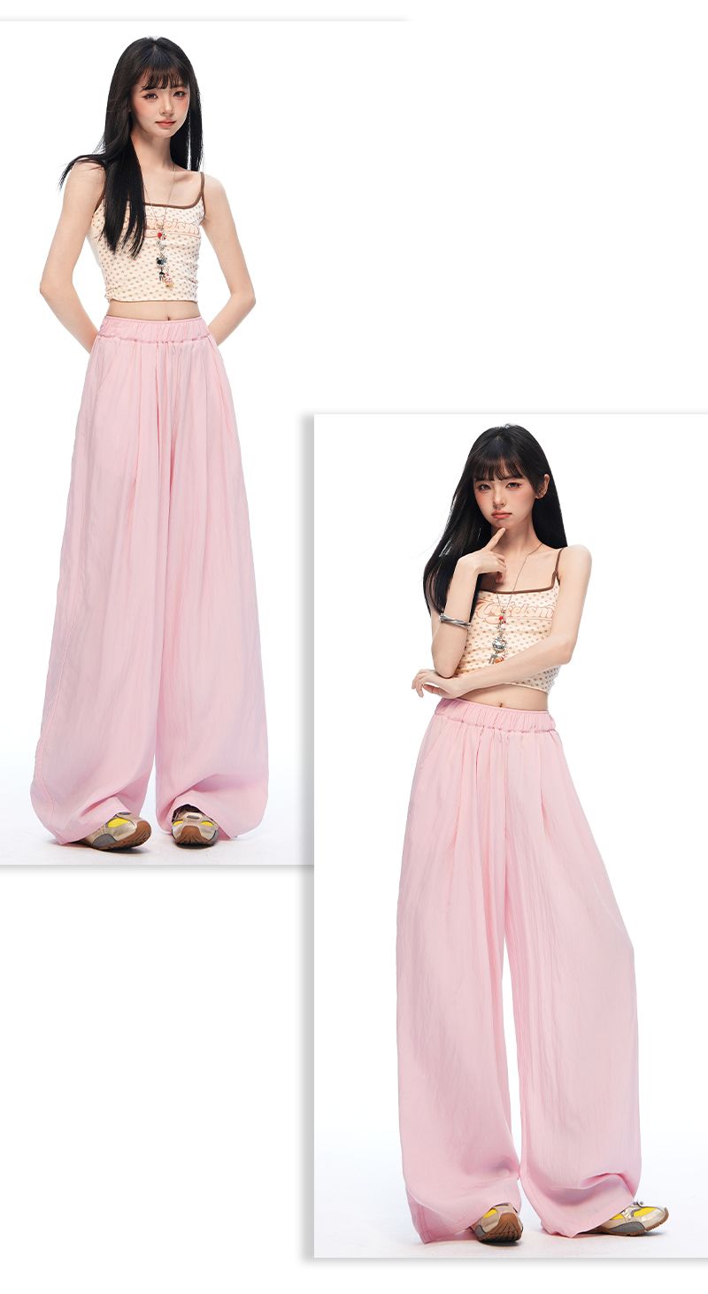 실사 새로운 아메리칸 디자인 센스 작은 키 캐주얼 여름 부드러운 얇은 분할선 루즈핏 와이드 레그 팬츠