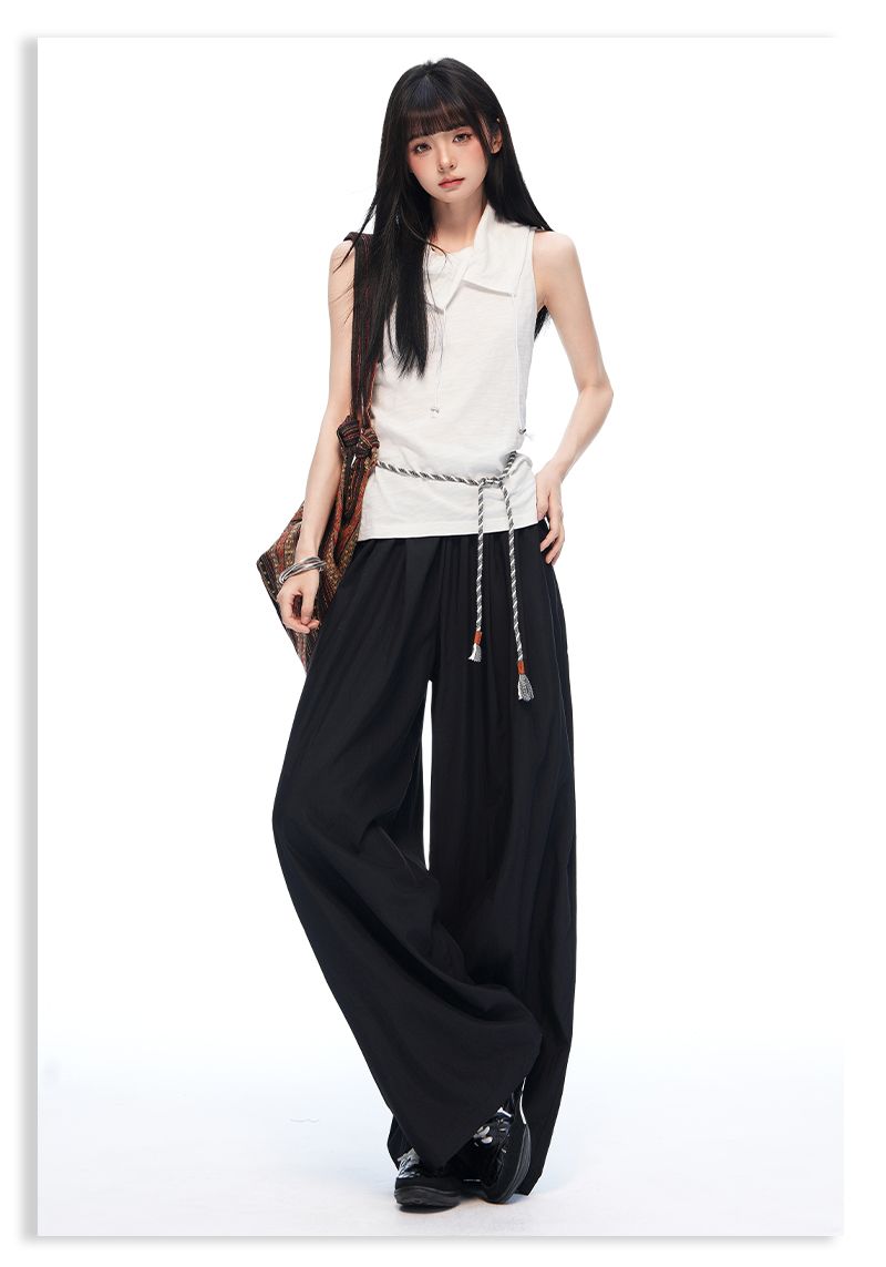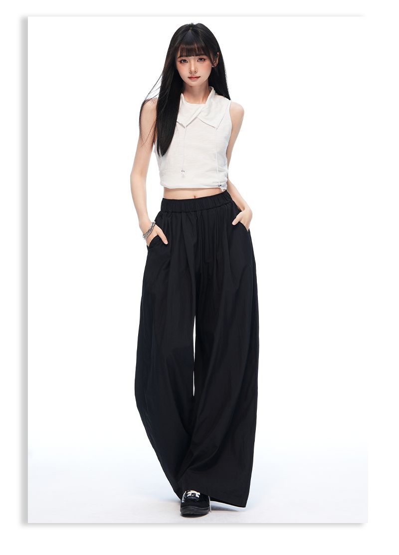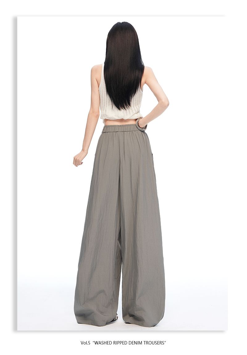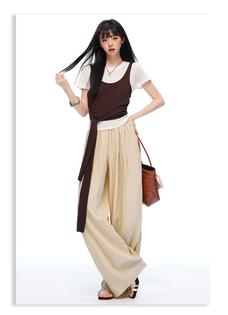 실사 새로운 아메리칸 디자인 센스 작은 키 캐주얼 여름 부드러운 얇은 분할선 루즈핏 와이드 레그 팬츠