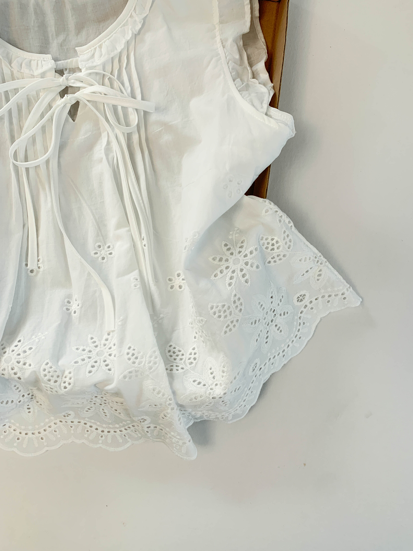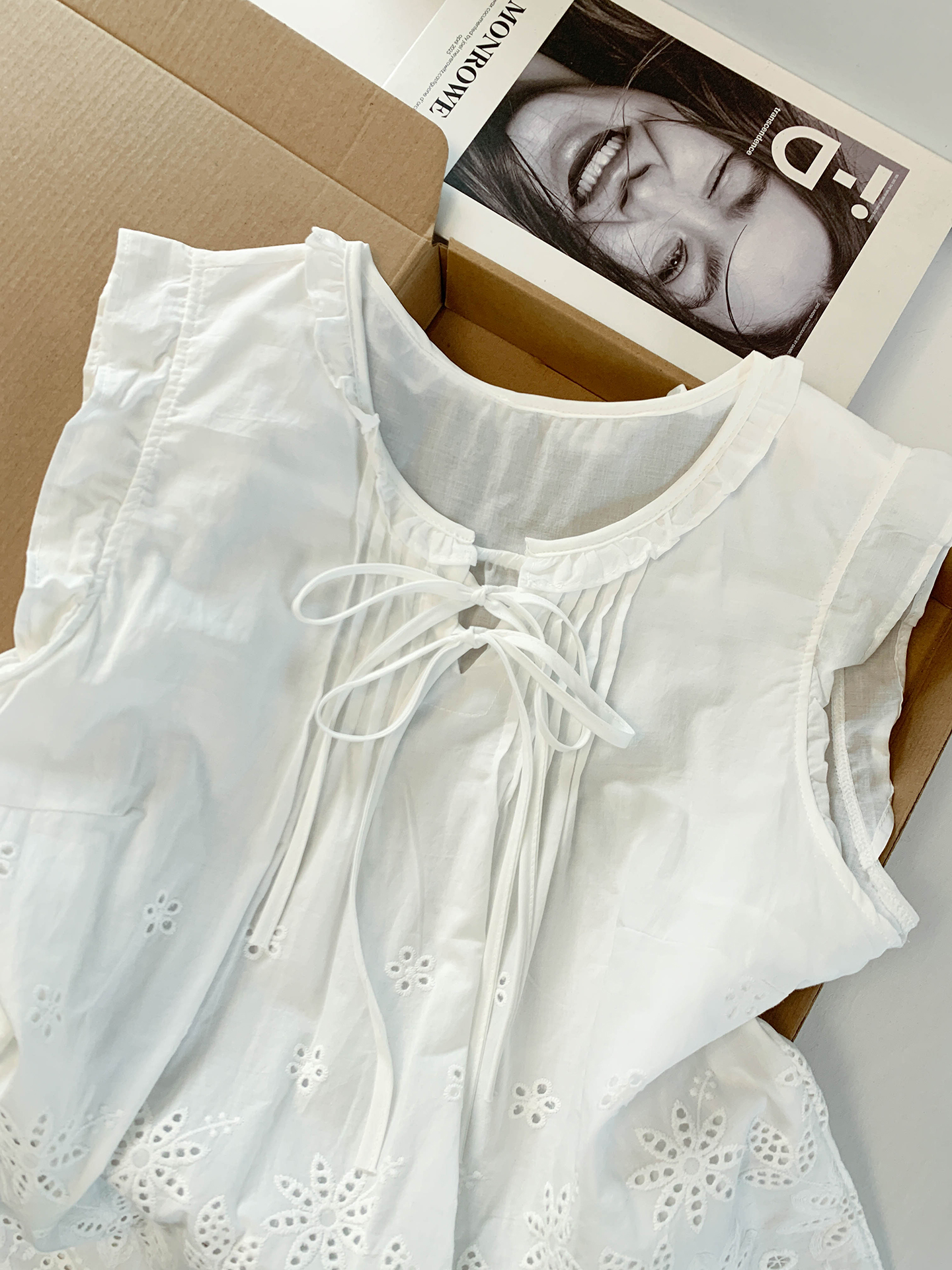 실사 통제 가격 20 홀로우 아웃 자수 레이스 여성 셔츠 여름 새로운 작은 날다 소매 레이스업 출퇴근 가스 질감 맨위
