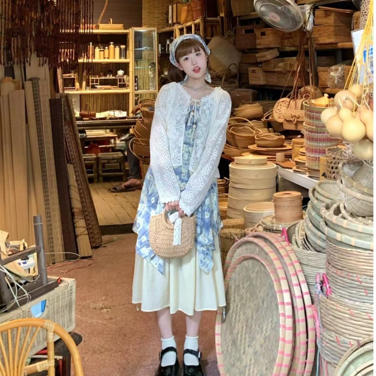 데이지 슬립 여성 드레스 여름 2026 새로운 고급 센스 요정 공차 가짜 유화 바람 달콤함 꽃무늬 롱 스커트