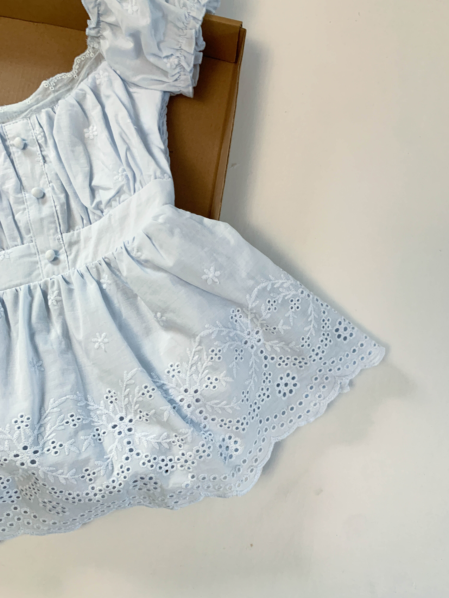 실사 통제 가격 20 프랑스식 부드러운 바람 파란색 V넥 자수 홀로우 아웃 자수 여성 셔츠 여름 반팔 맨위
