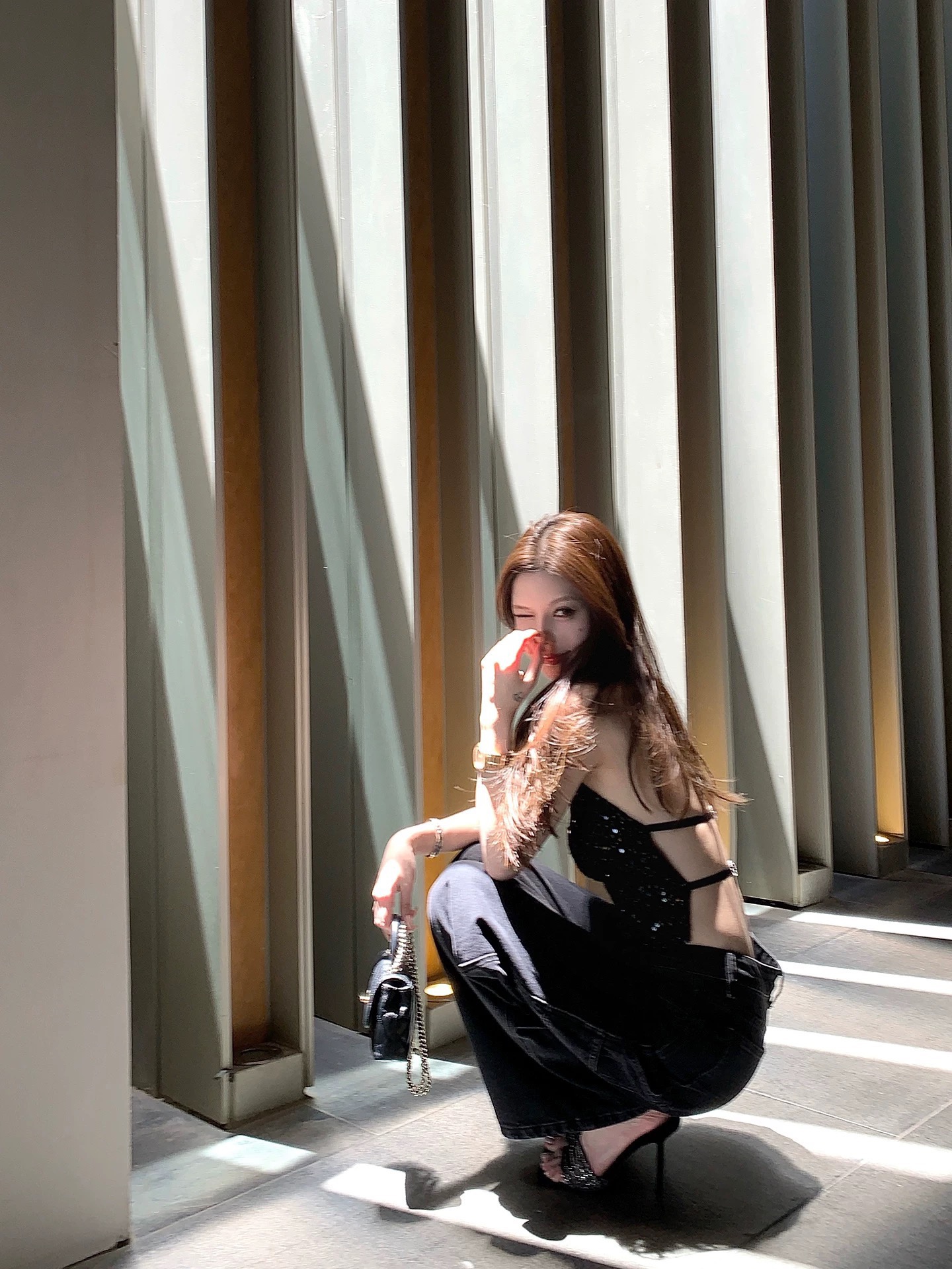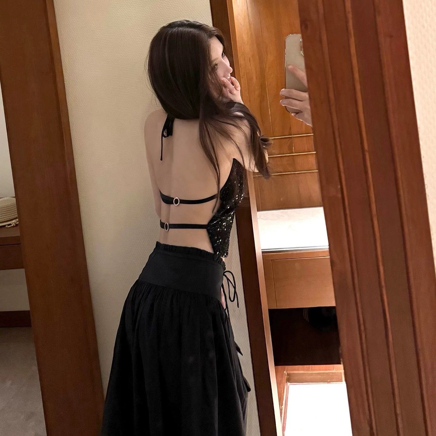 titi 작은 자매 쉬 너 눈부신 캐미솔 여름 스팽글 샤오시엔 백리스 행침 목 쇼트 스타일 맨위