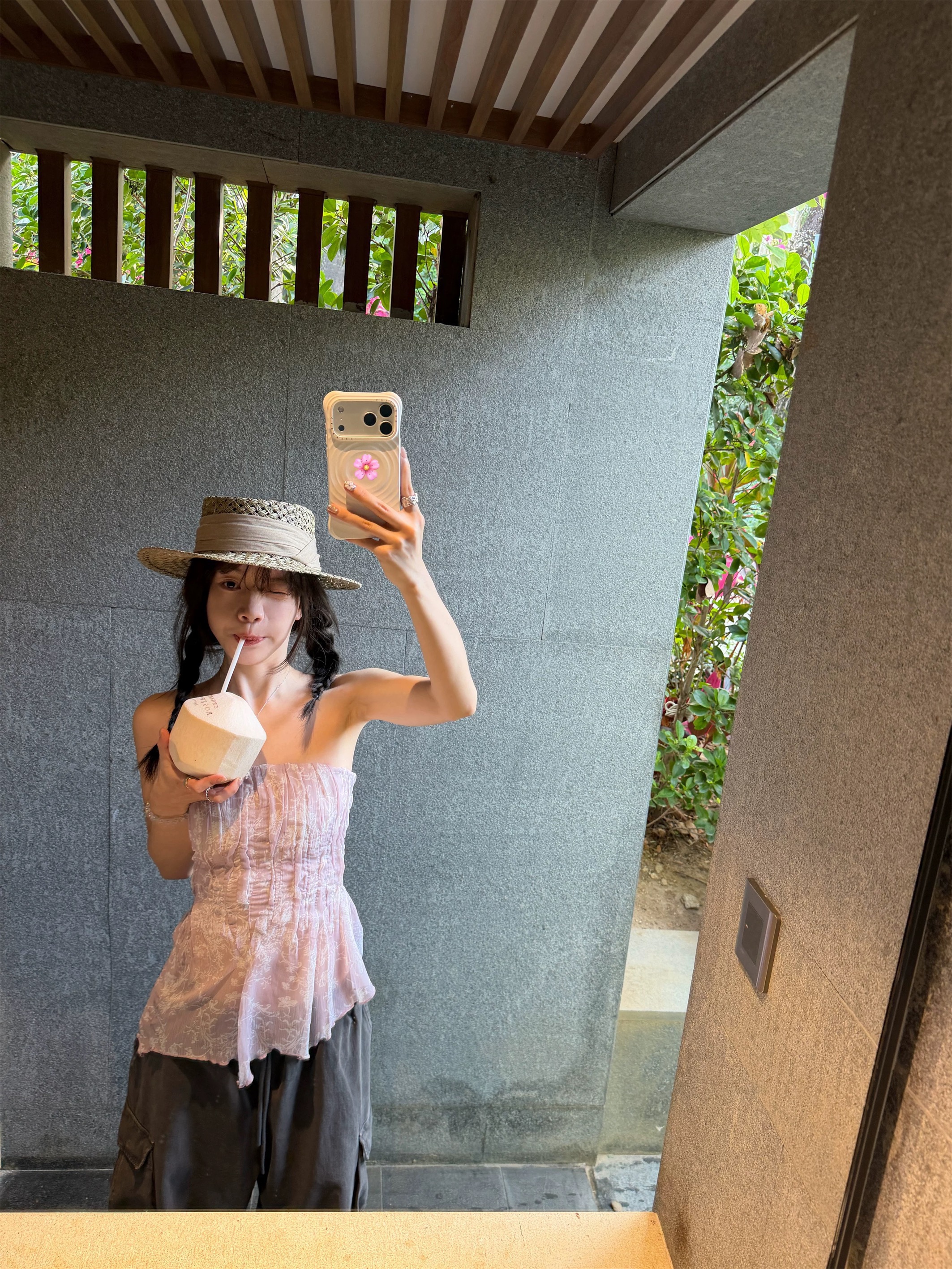 열세 개 2026 여름 새로운 한국 스타일 휴가 바람 캐미솔 작은 셔츠 투피스 세트 민소매 스택 착용 맨위
