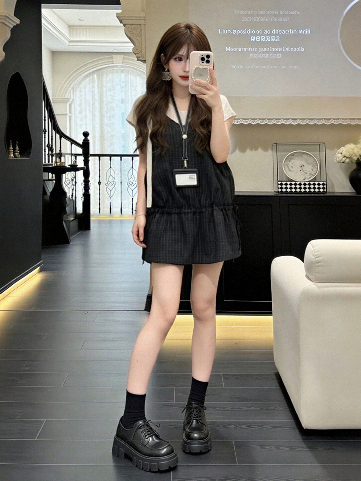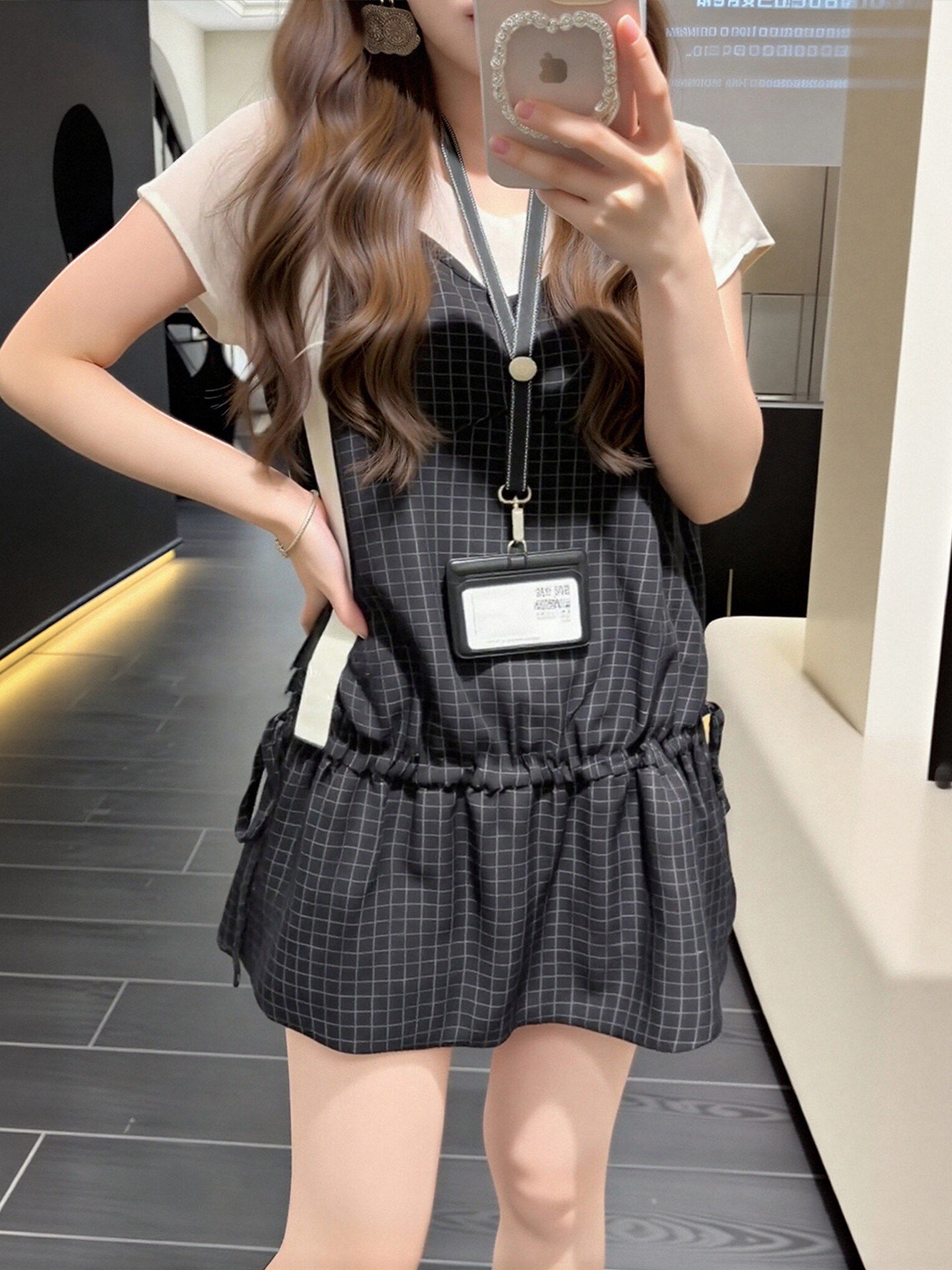 프랑스식 품격 레트로 체크무늬 V넥 여성 드레스 여름 빅 사이즈 지방 mm 허리 수축 슬림해 보이는 불규칙 길다 치마