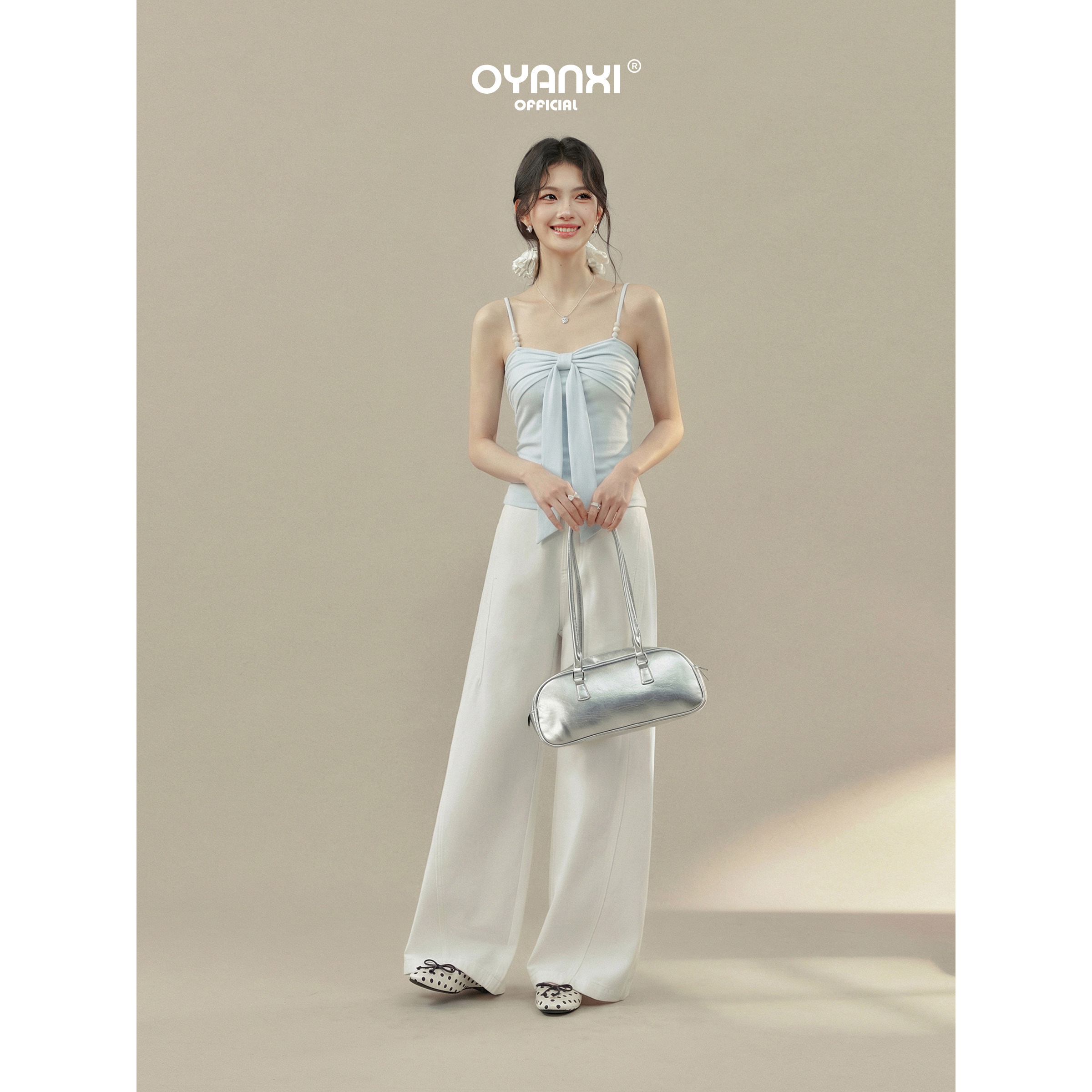 끝없는 여름 파란색 나비 매듭 인사이드 가져 가라. 캐미솔 2026 봄 외출용 민소매 몸매 가꾸기 맨위