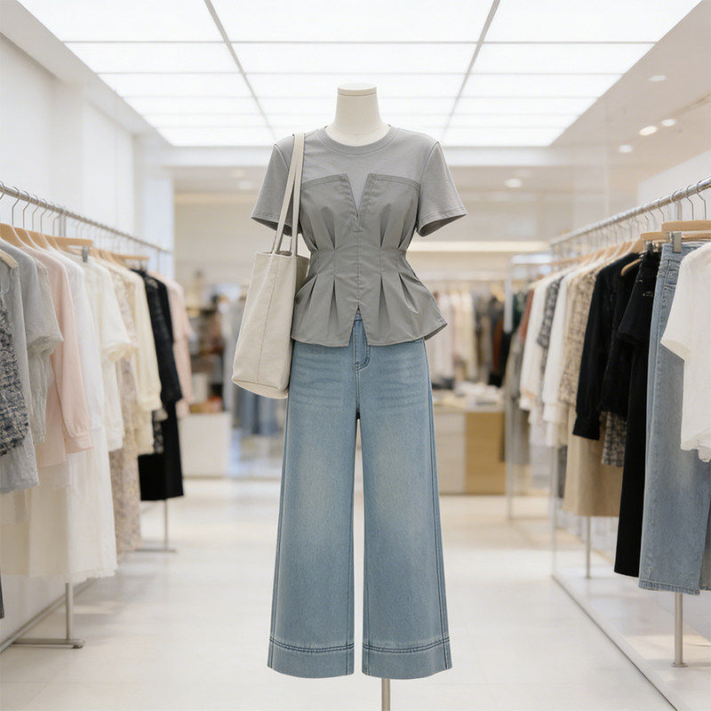 2026 여름 한 부서 품격 전체 집합 ootd 착용 가져 가라. 반소매 셔츠 와이드 레그 팬츠 출퇴근 고급 센스 세트 여성