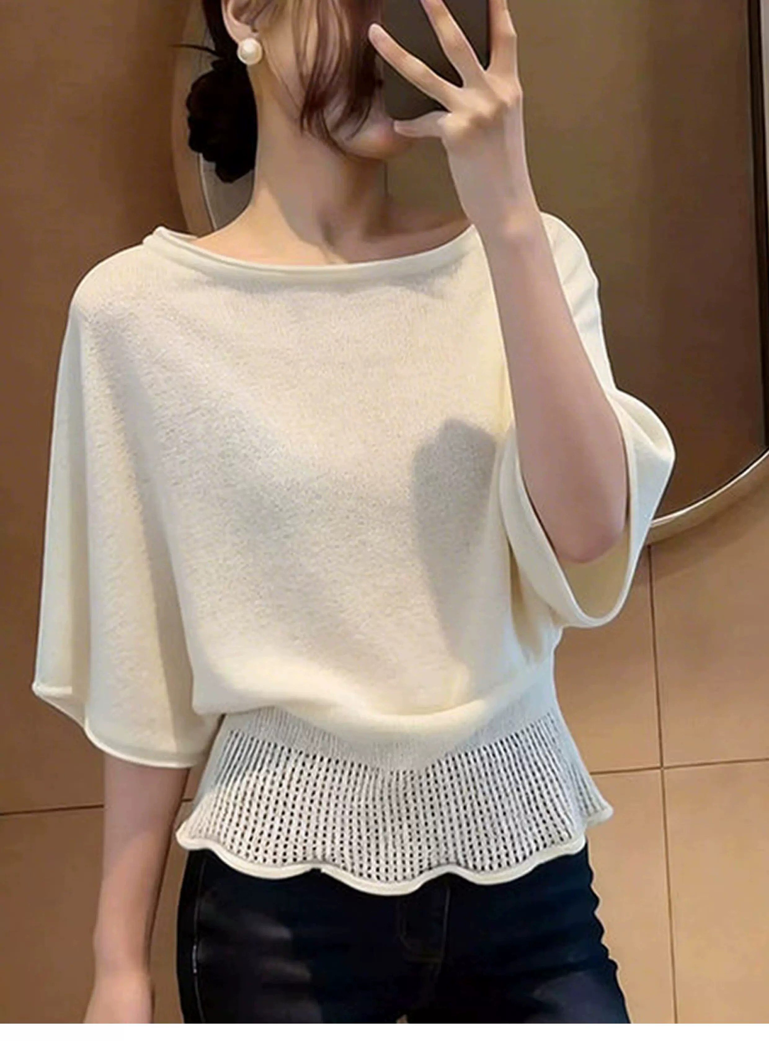 감기 여자 비스듬한 어깨 주간 실크 라이 경기 서울 맨위 나팔 소매 지성 우아한 프랑스식 낭만주의 니트 스웨터