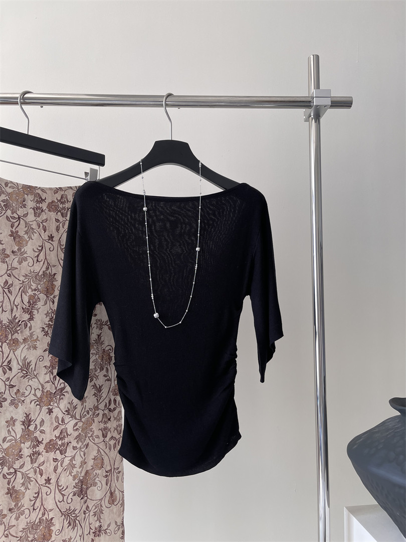 감기 여자 비스듬한 어깨 주간 실크 라이 경기 서울 맨위 나팔 소매 지성 우아한 프랑스식 낭만주의 니트 스웨터