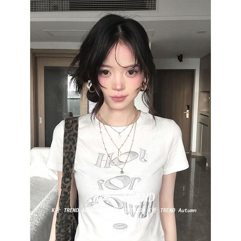 아메리칸 알파벳 만화 프린트 반팔 티셔츠 여성 여름 디자인 센스 작은 대중 몸매 가꾸기 슬림해 보이는 핫걸 쇼트 스타일 맨위