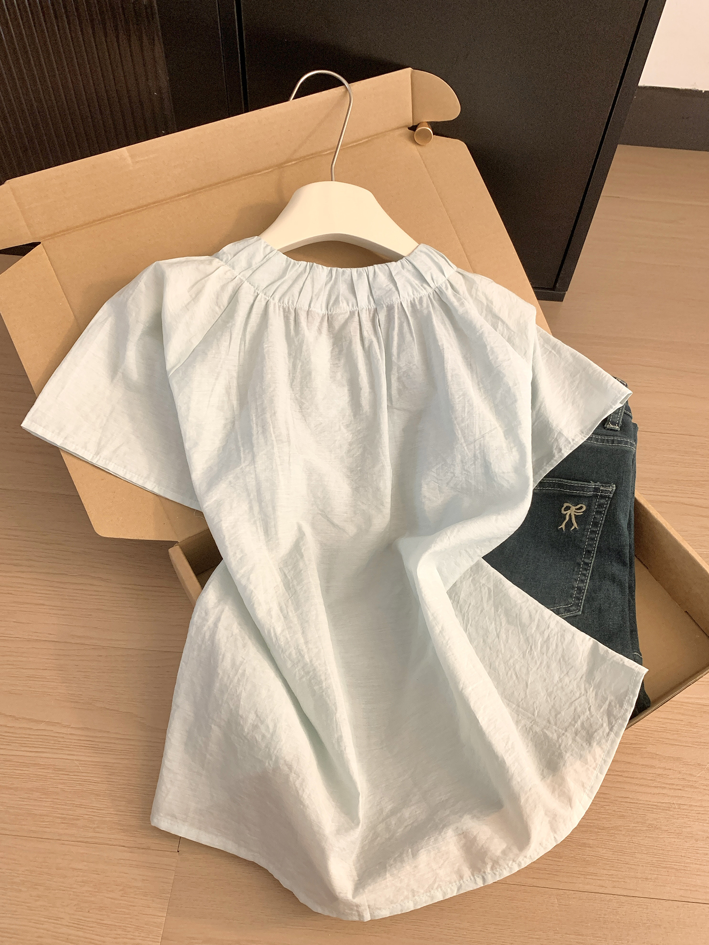 실사 통제 가격 20 프랑스식 부드러운 바람 화이트 라운드 넥 플리츠 여성 셔츠 여름 슬림해 보이는 Feifei 소매 작은 셔츠 맨위