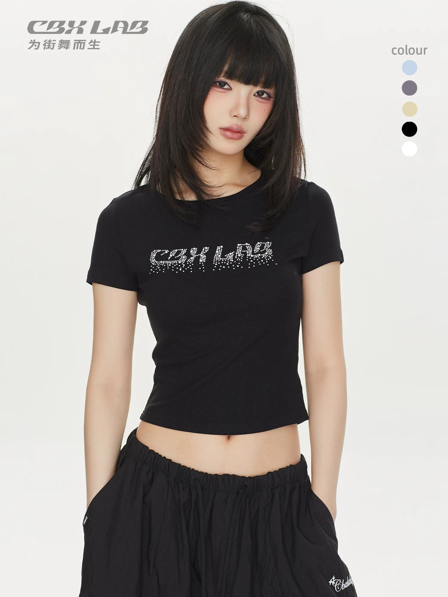 스트리트 댄스 별빛 빛나다 핫픽스 핫걸 춤추기 미니멀리즘 작은 셔츠 아메리칸 섹시함 몸매 가꾸기 슬림해 보이는 반팔