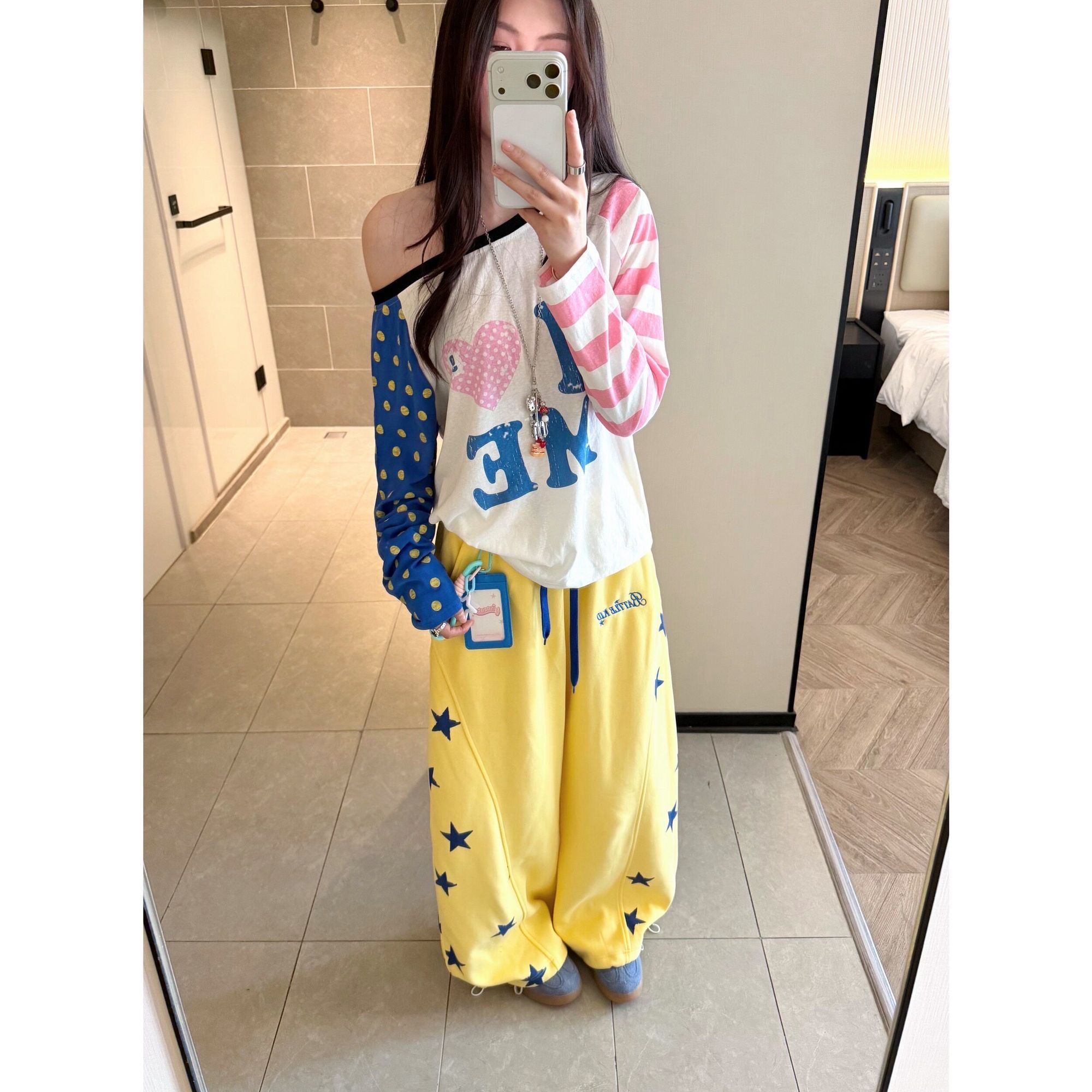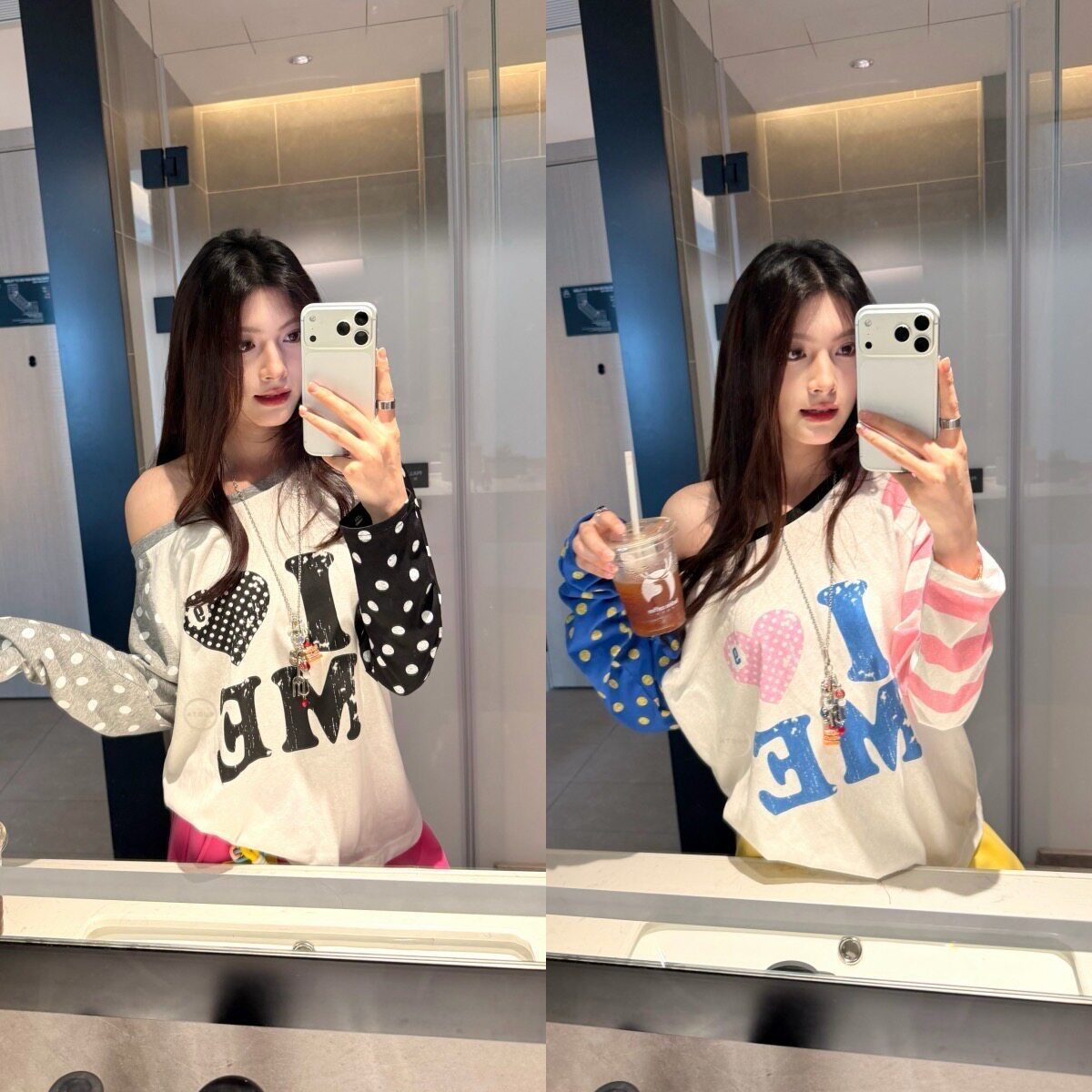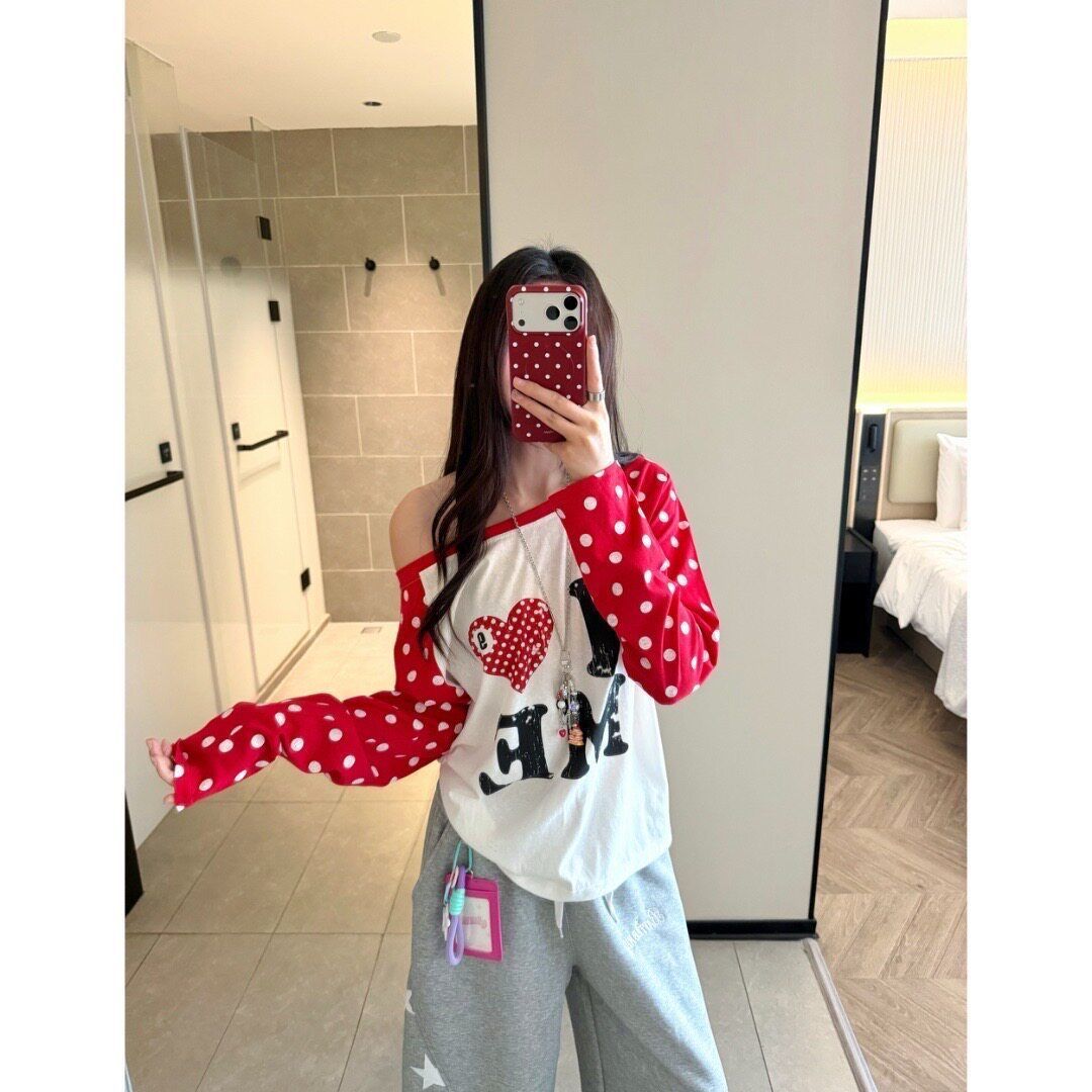 아메리칸 배색 도트 무늬 삽입 어깨 반팔 티셔츠 여성 2026 여름 알파벳 프린트 달콤한 핫걸 몸매 가꾸기 쇼트 스타일 맨위