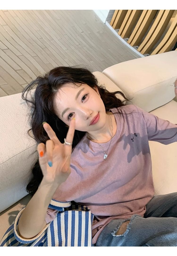 얇은 스타일 반팔 티셔츠 한 부서 느슨함 센스 V넥 여름 루즈핏 순수한 욕망 chic 핑크색 맨위 여성 의류