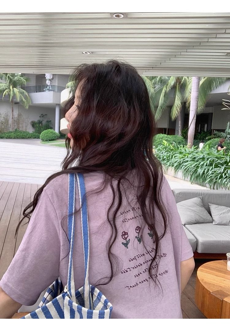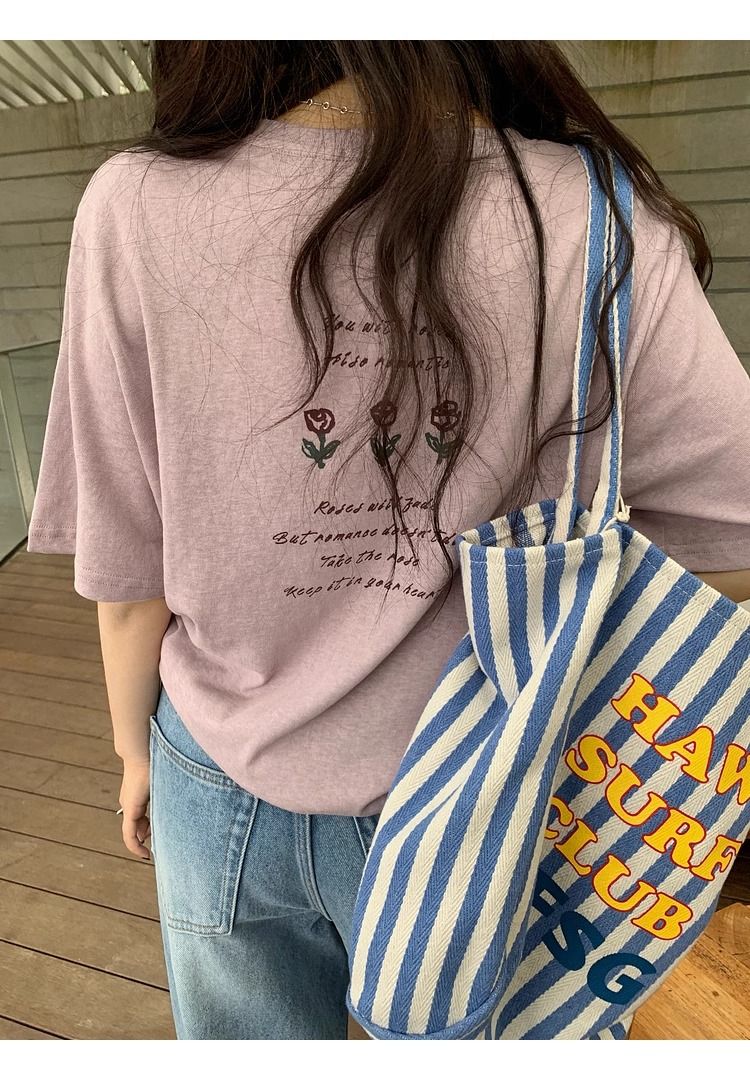 한국 동대문 한 부서 미니멀리즘 프린트 루즈핏 슬림해 보이는 라운드 넥 반팔 티셔츠