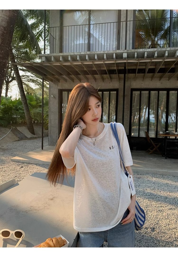 얇은 스타일 반팔 티셔츠 한 부서 느슨함 센스 V넥 여름 루즈핏 순수한 욕망 chic 맨위 여성 의류