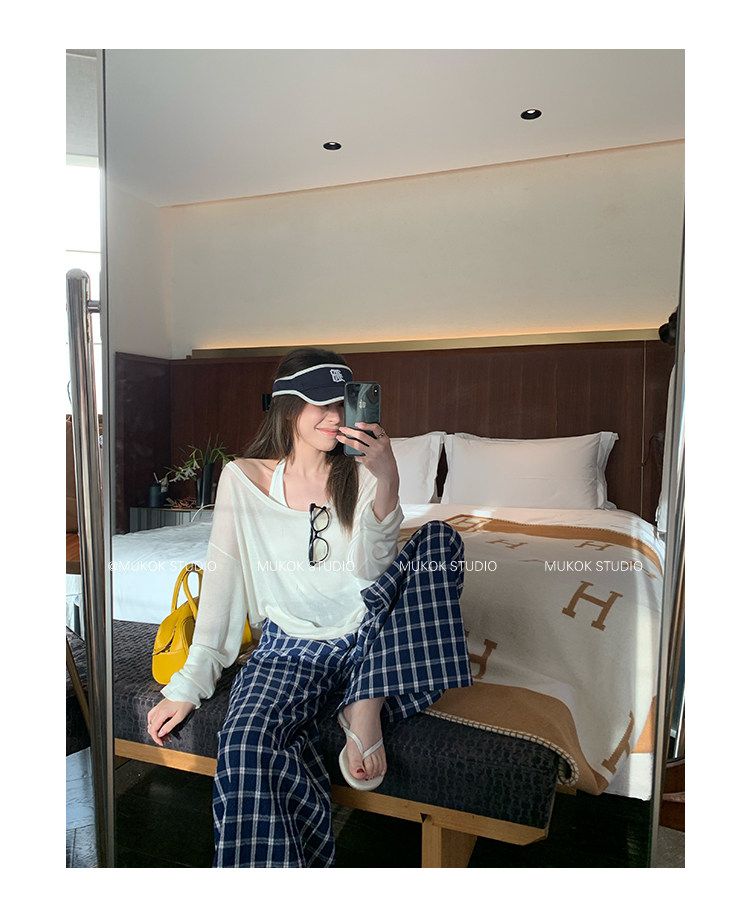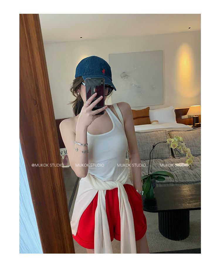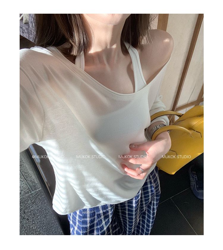 색상 실 얼음 차가운 실크 오프숄더 니트 반팔 티셔츠 여름 슬림해 보이는 섹시함 민소매 인사이드 잡아라. 의류 여성