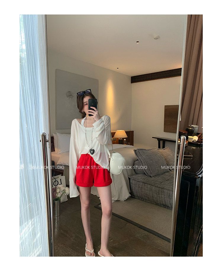 100 라이 경기 서울 주간 실크 청 ~을 통해 차가운 센스 자외선 차단 블라우스 행침 목 캐미솔 투피스 세트