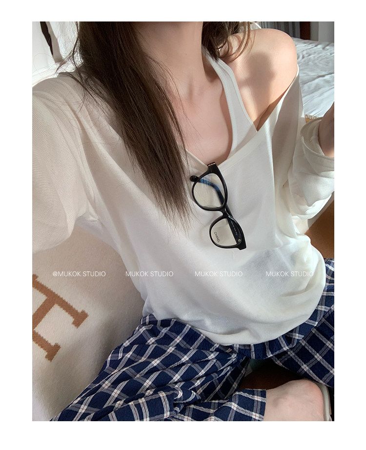 15 아마 85 아크릴 아마 레트로 V넥 몸매 가꾸기 니트 여성 여름 캐주얼 슬림해 보이는 다용도 맨위