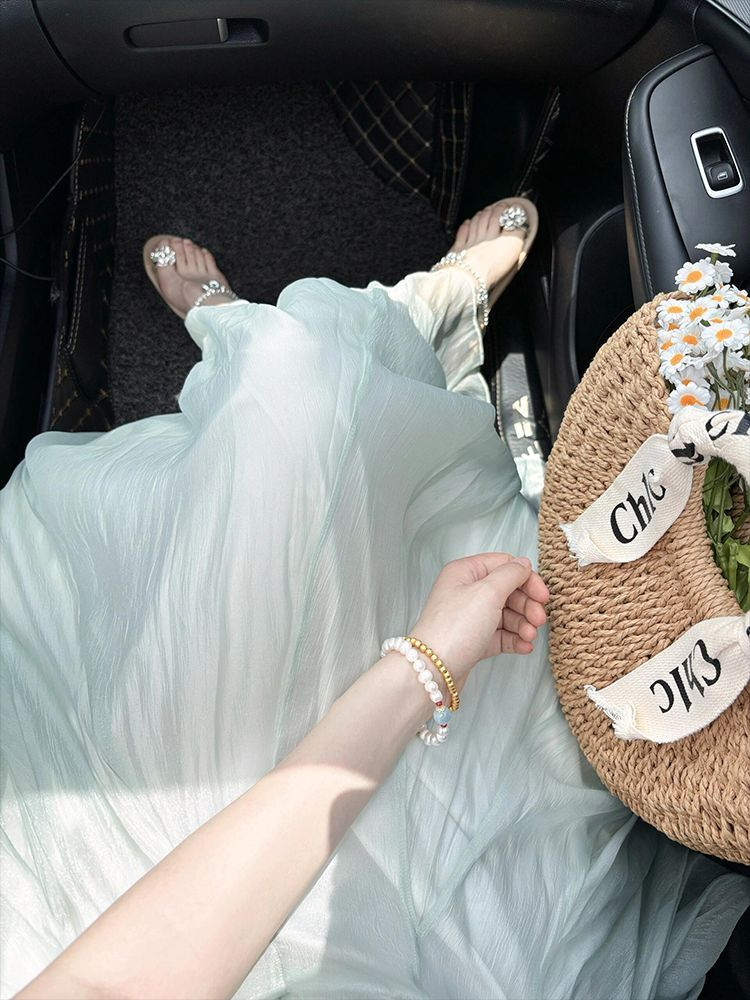 데이지 슬립 여성 드레스 여름 2026 새로운 고급 센스 요정 공차 가짜 유화 바람 달콤함 꽃무늬 롱 스커트