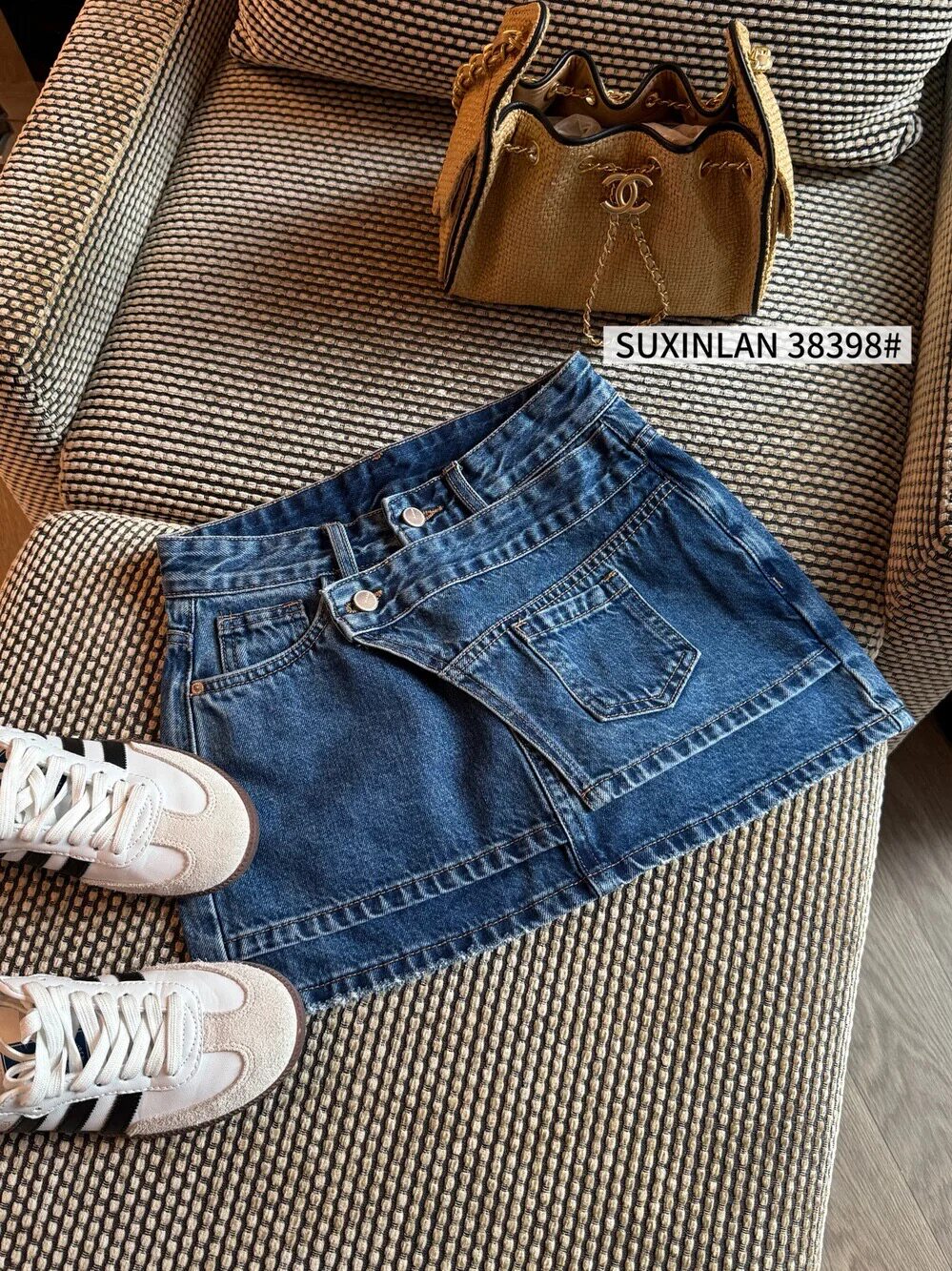 2026 여름 새로운 패션 다용도 불규칙 페이크 레이어드 데님 미니 스커트 반신 스커트