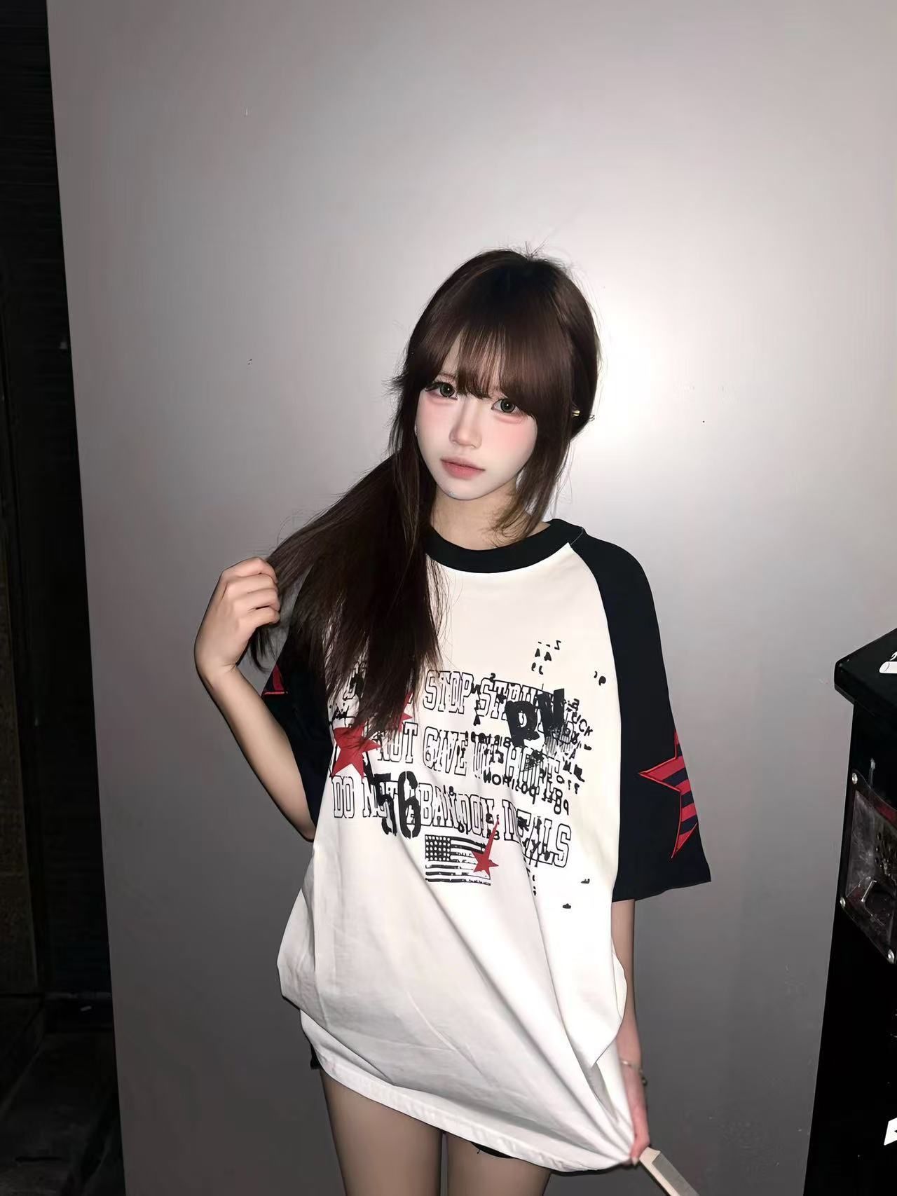 스트리트 댄스 별빛 빛나다 핫픽스 핫걸 춤추기 미니멀리즘 작은 셔츠 아메리칸 섹시함 몸매 가꾸기 슬림해 보이는 반팔