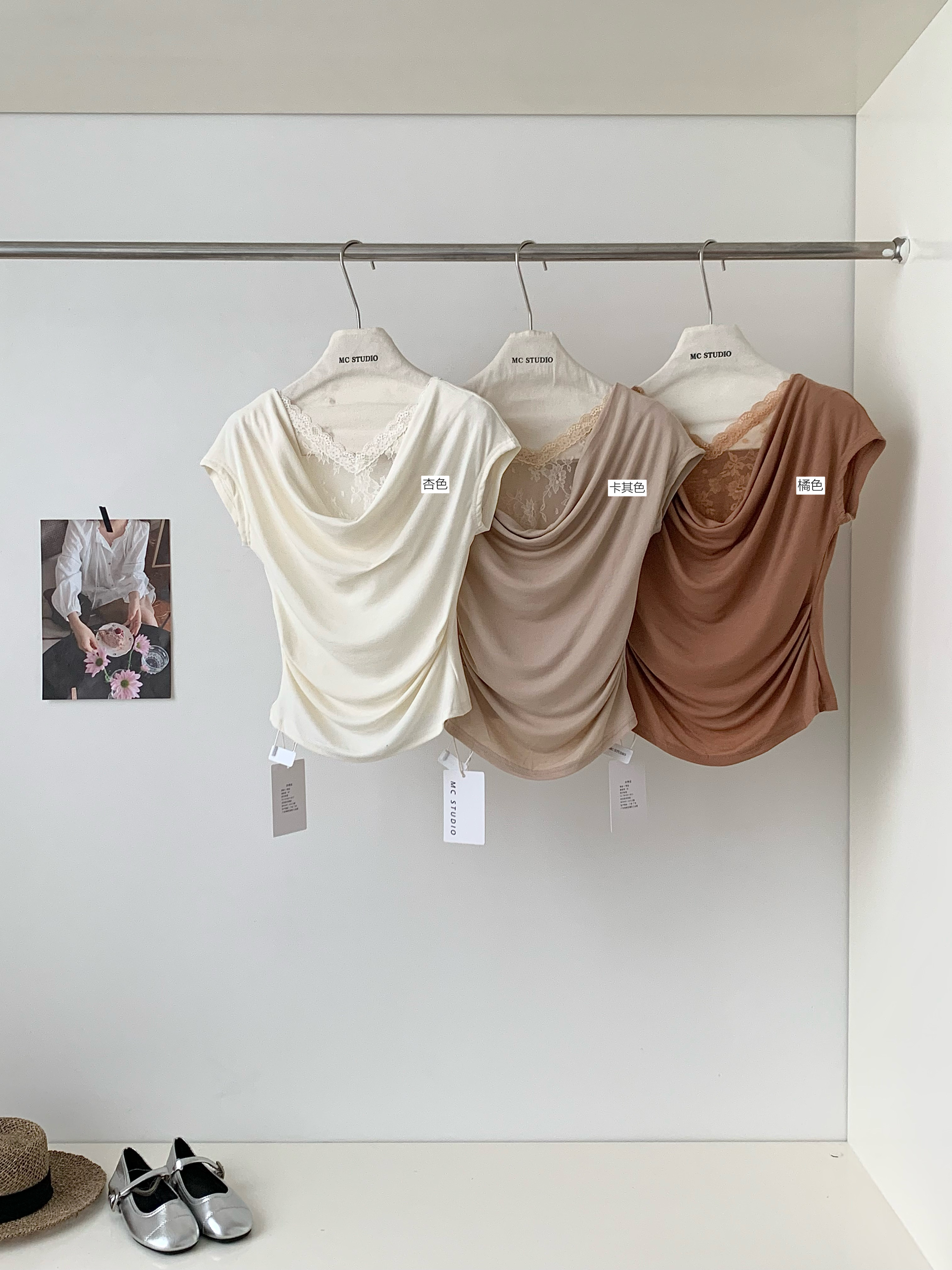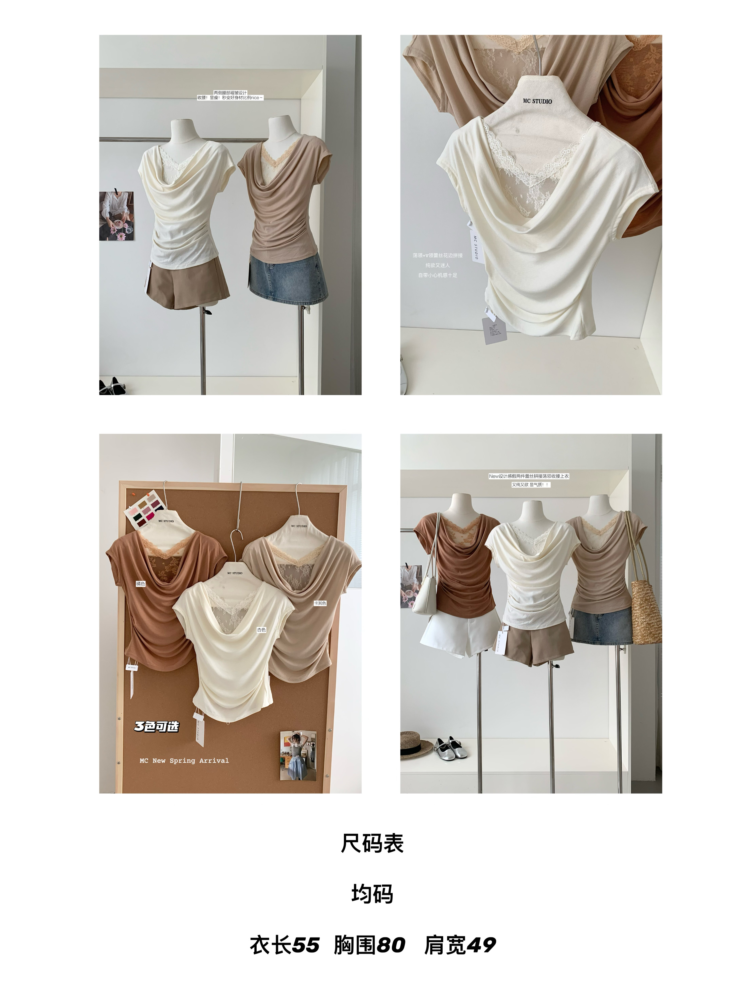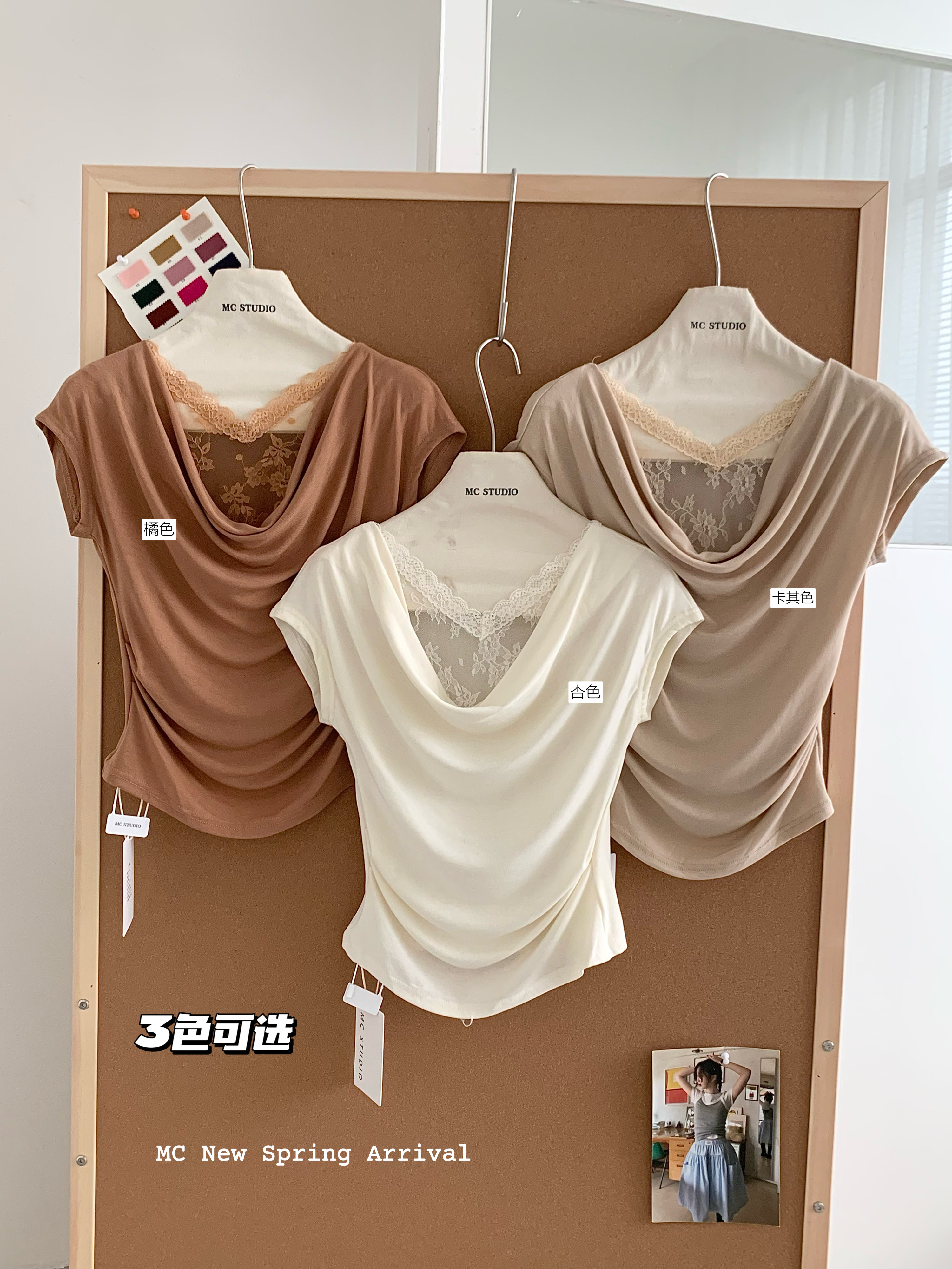 2026 여름 새로운 한국 스타일 품격 흔들다 칼라 패치워크 레이스 주름 허리 수축 슬림해 보이는 반팔 작은 셔츠 여성