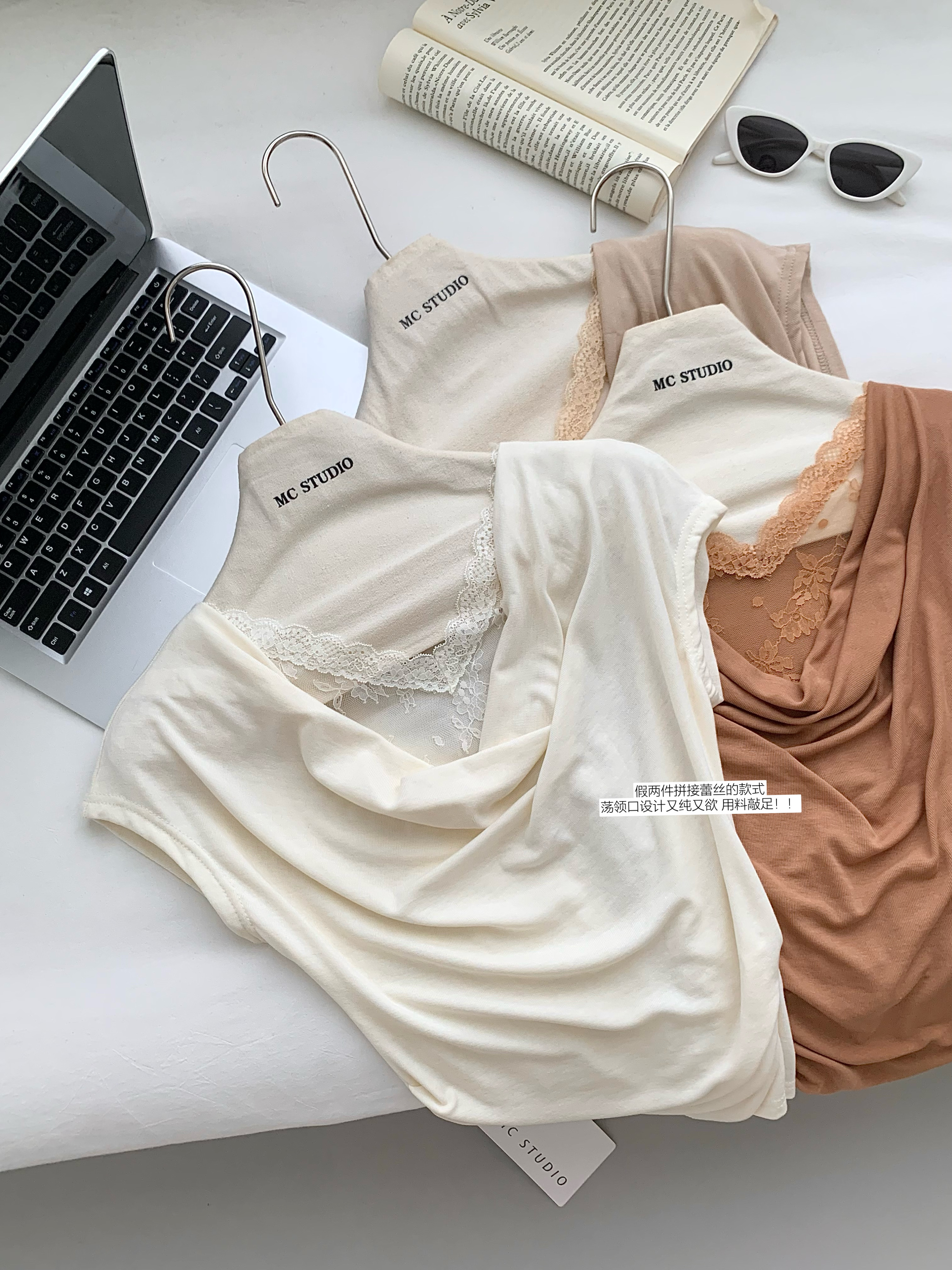 3mer 오. 오. 세 자매 프랑스식 백리스 품격 도트 무늬 행침 목 캐미솔 봄 여름 슬림해 보이는 민소매 맨위 여성
