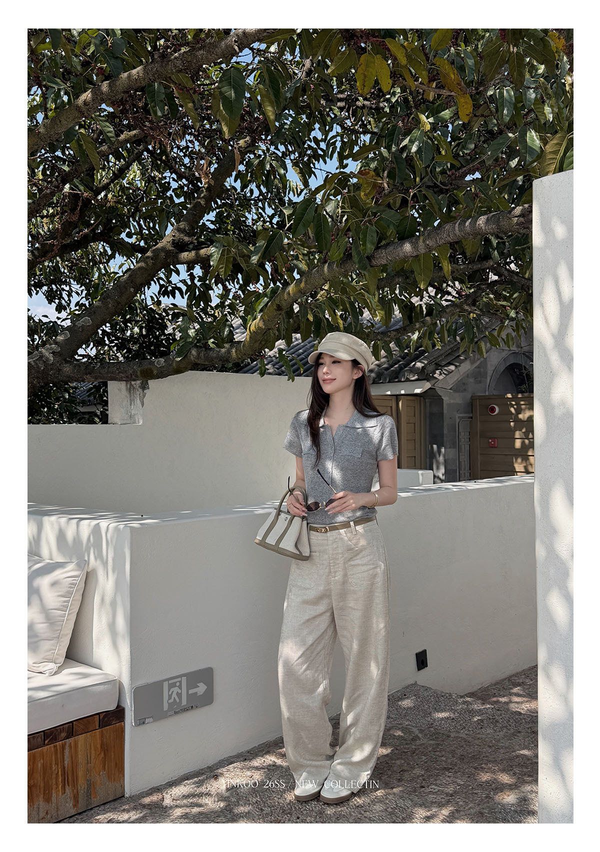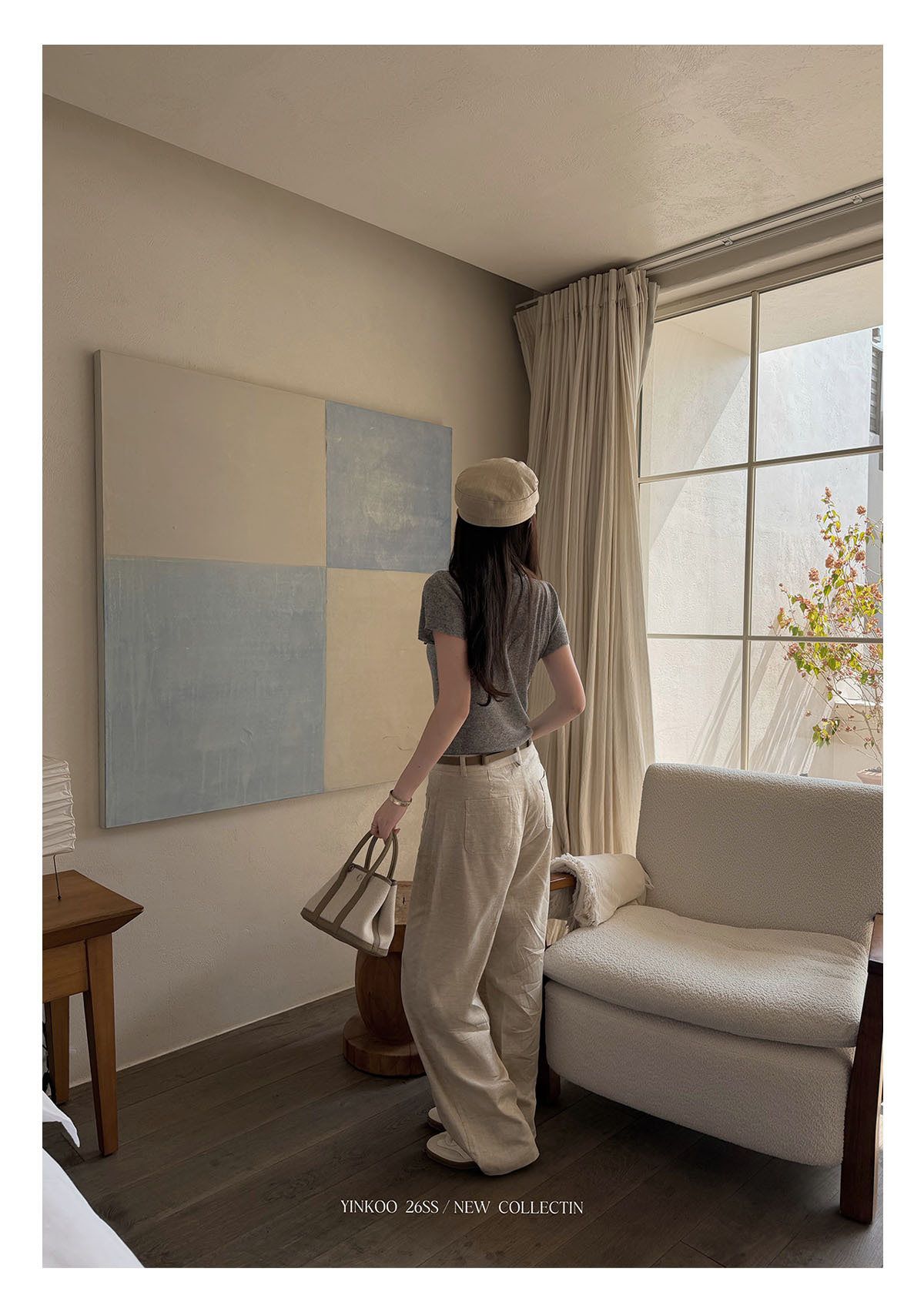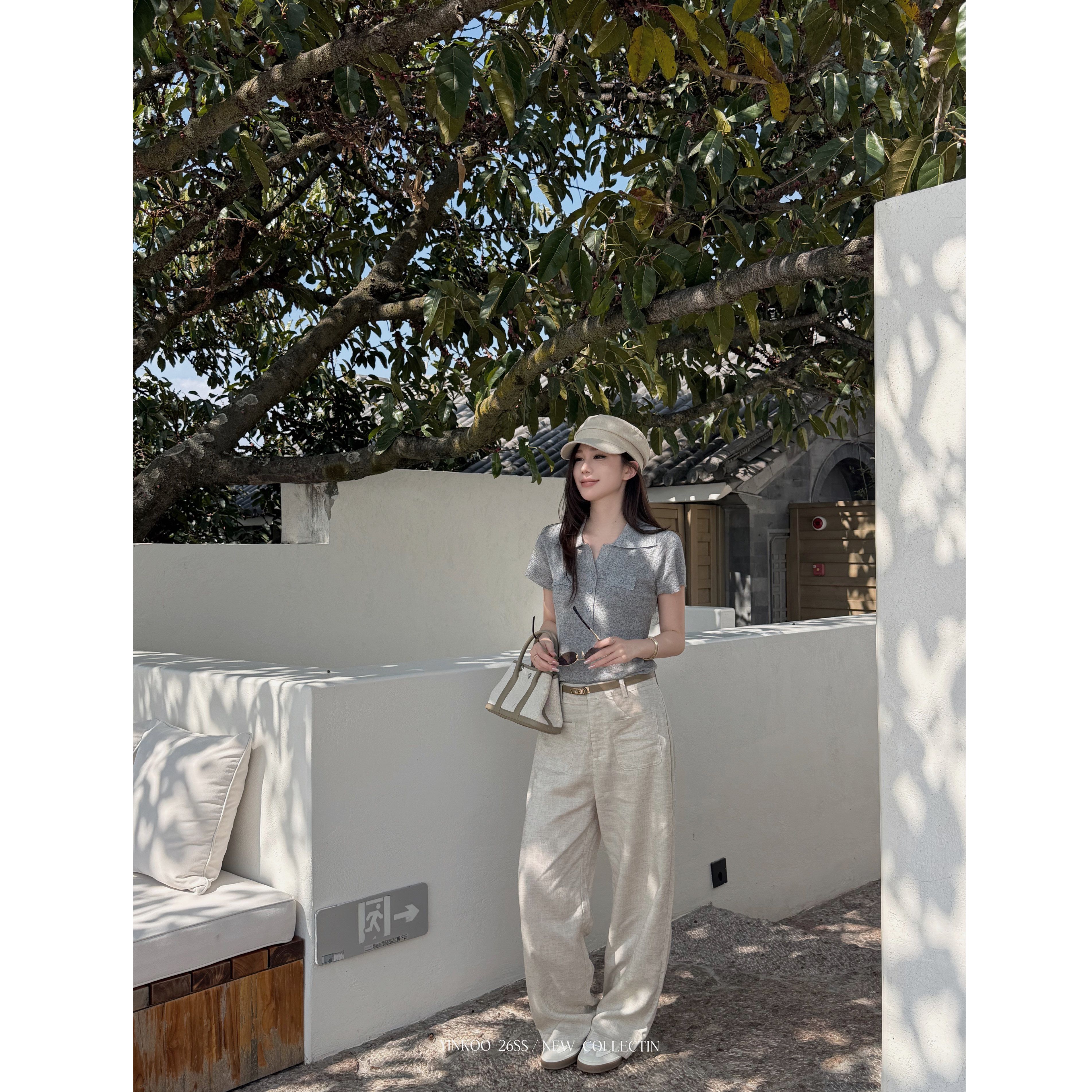 15 아마 85 아크릴 아마 레트로 V넥 몸매 가꾸기 니트 여성 여름 캐주얼 슬림해 보이는 다용도 맨위