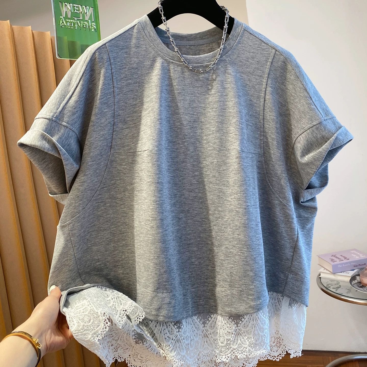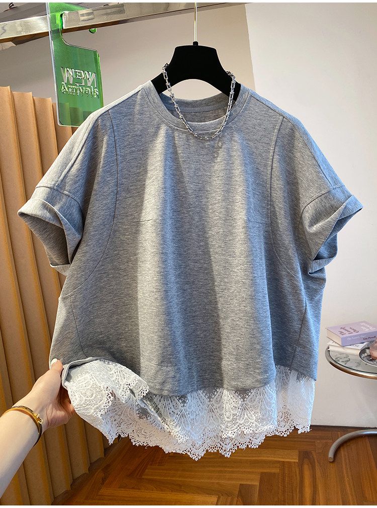 원본 원단 특별 빅 사이즈 300 근 슈퍼 잘 생긴 알파벳 레이스 티셔츠 여성용 짧은 소매 2026 여름 새로운