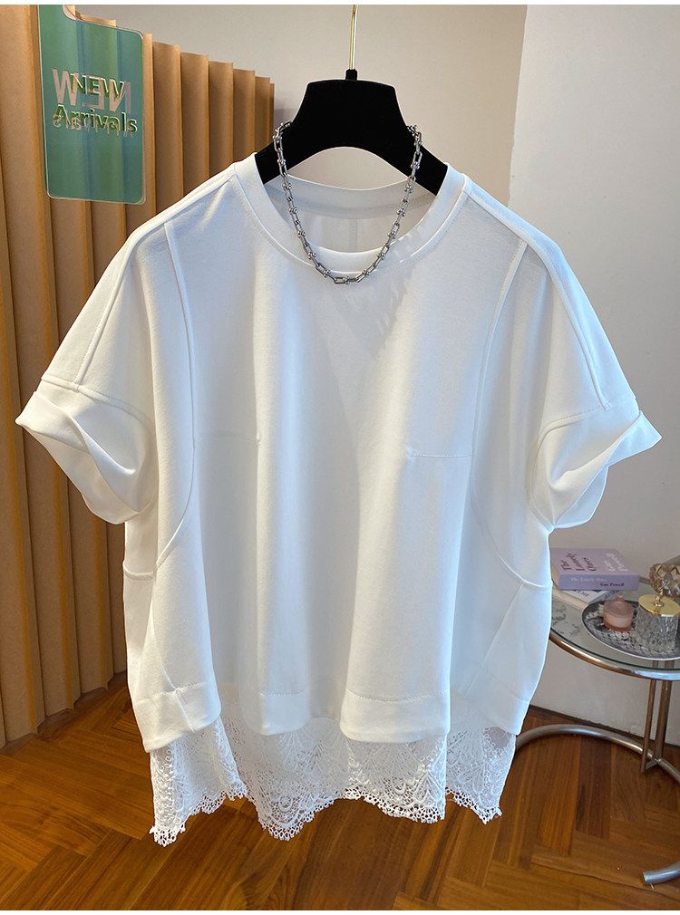 21 순면 특별 빅 사이즈 300 근 고급 센스 화이트 레이스 조각 티셔츠 여성용 짧은 소매 여름 새로운