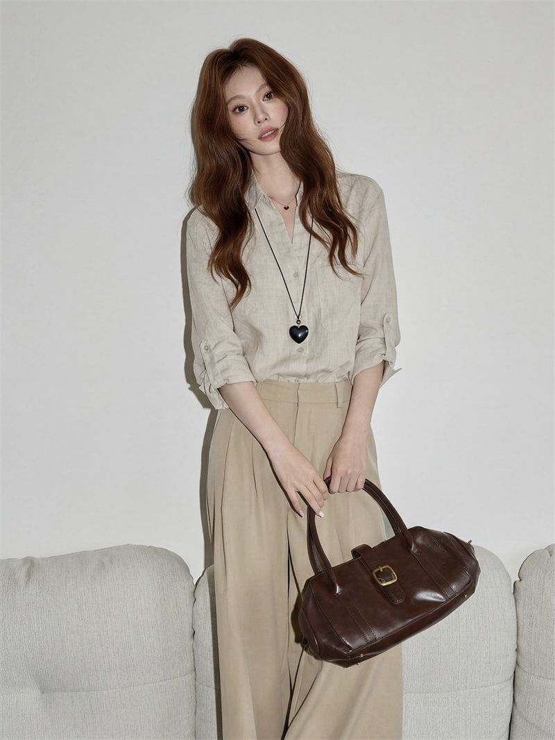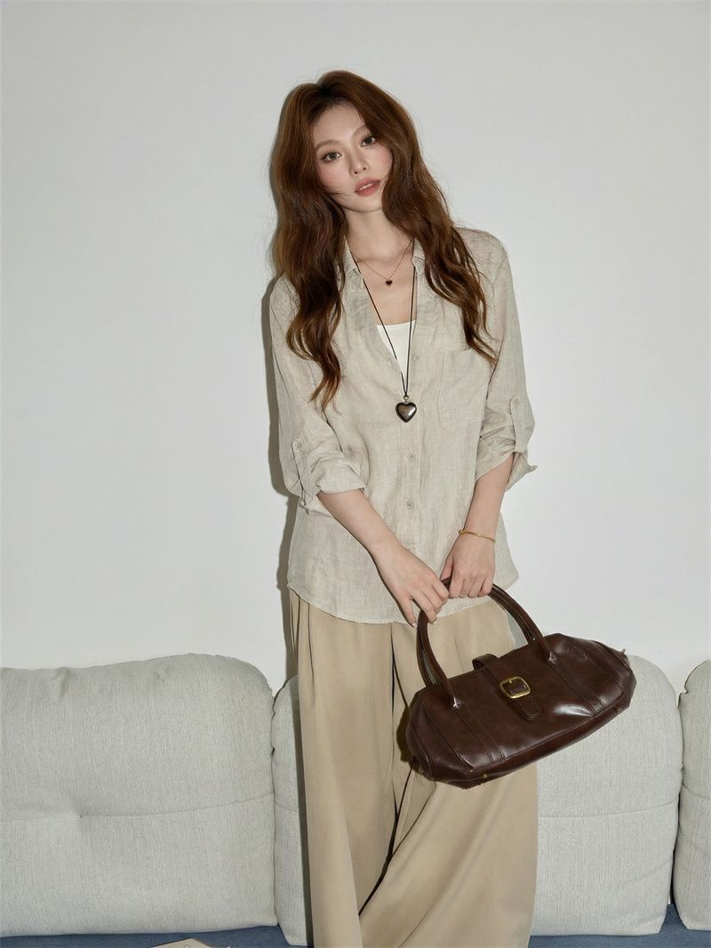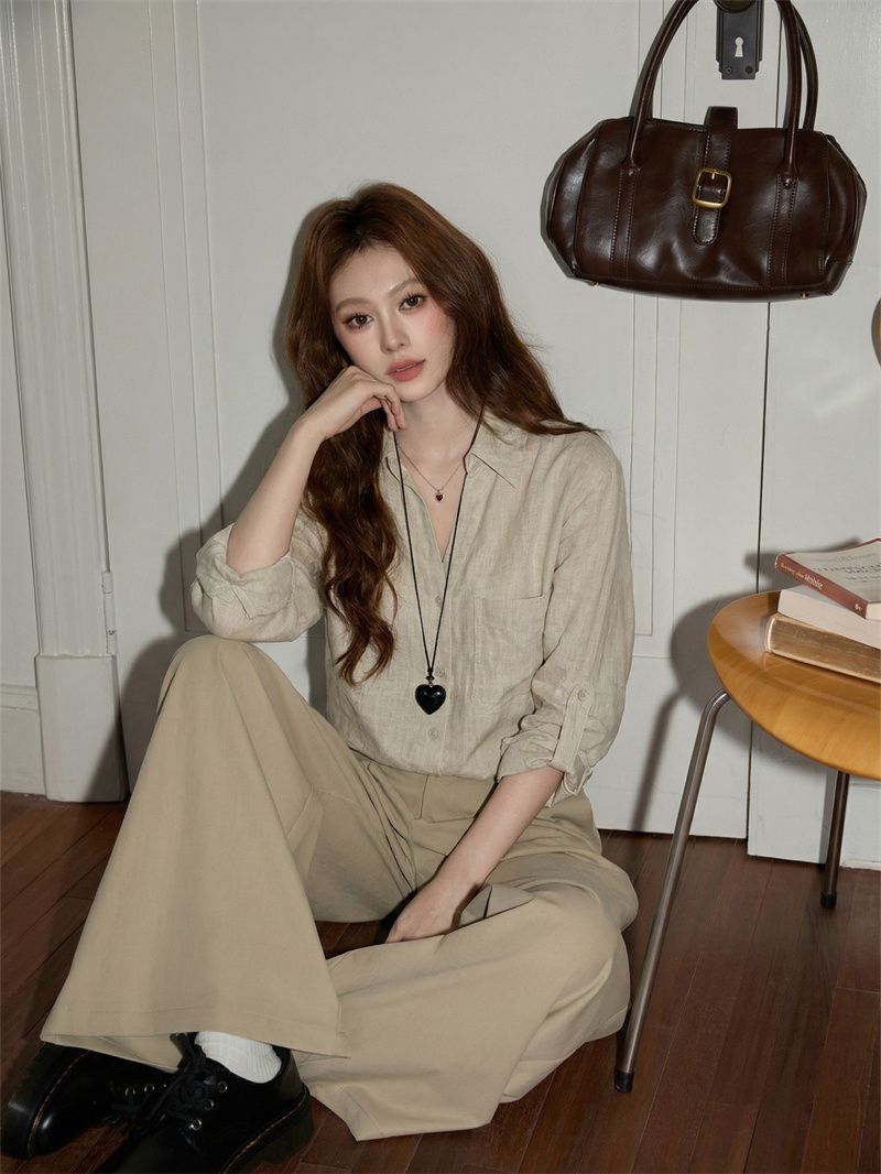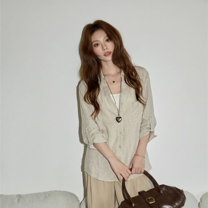 얇은 스타일 POLO 칼라 품격 긴팔 여성 셔츠 봄 Chic 카디건 코트 캐주얼 루즈핏 셔츠 자외선 차단 맨위