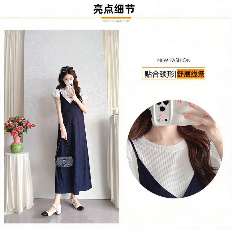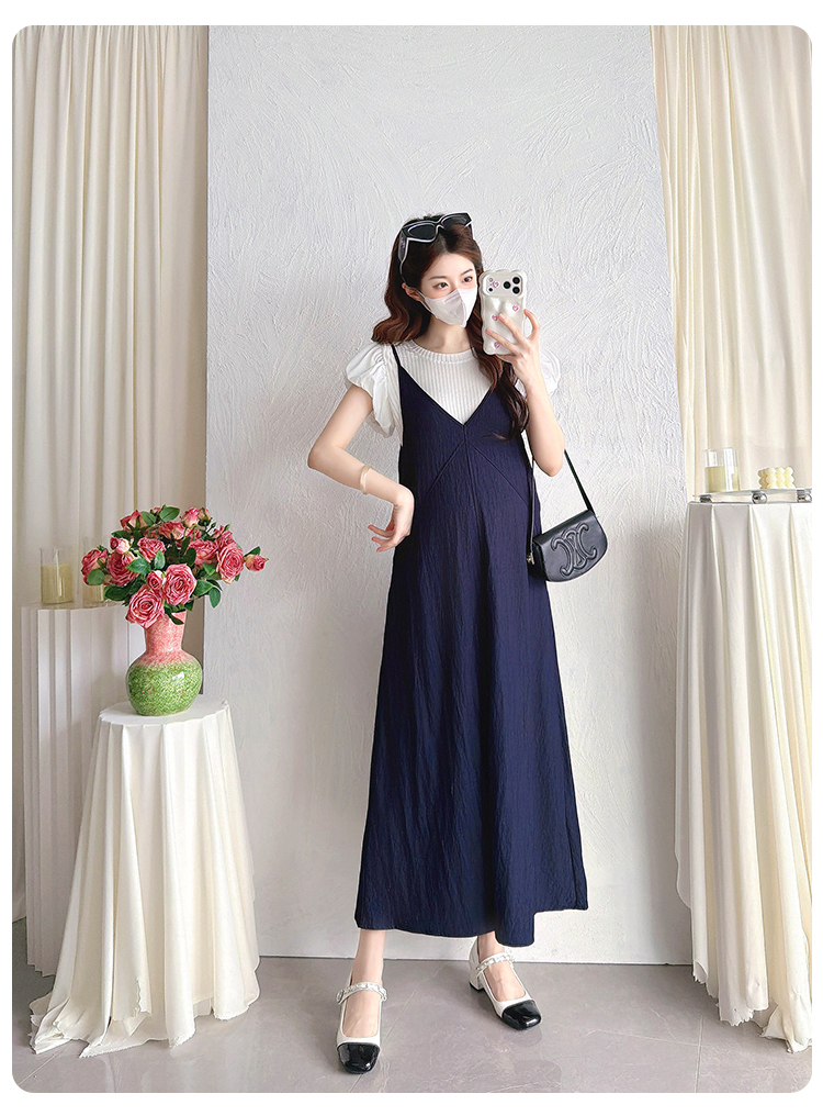 실사 출산 착용 중간 길이 페이크 레이어드 임산부 드레스 여름 새로운 루즈핏 빅 사이즈 여성 의류