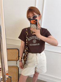 아메리칸 레트로 레오파드 무늬 프린트 반팔 티셔츠