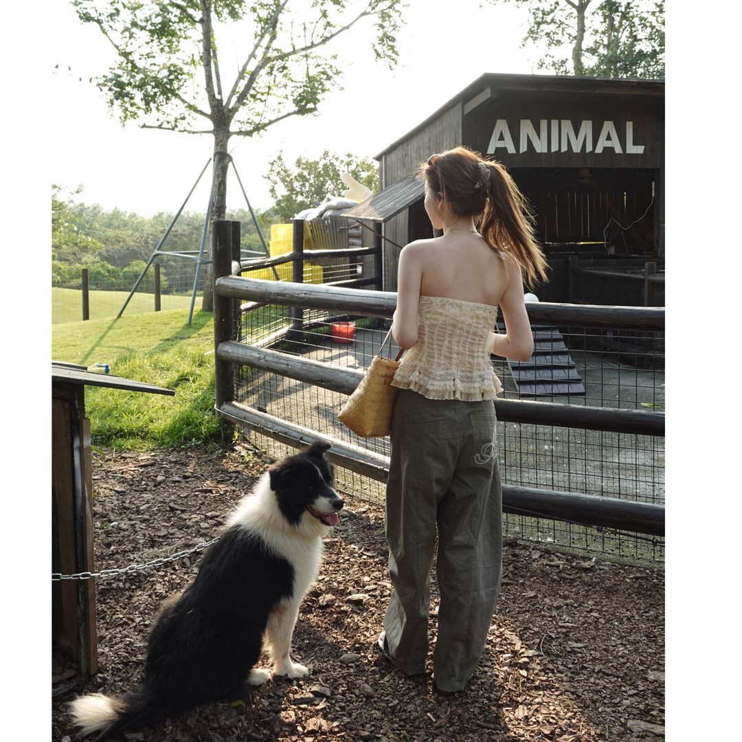 정가 재고 있음 프랑스식 순수한 욕망 바람 레이스 레이스 슬립 맨위 여성 하이웨이스트 도루 센스 넓은 다리 청바지 세트
