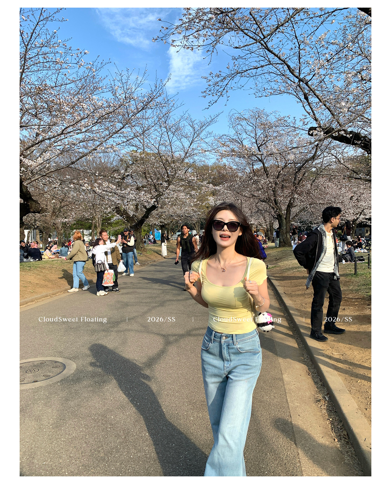 다용도 광장 칼라 몸매 가꾸기 반팔 티셔츠 여성 여름 캐주얼 일상 황색 쇼트 스타일 맨위