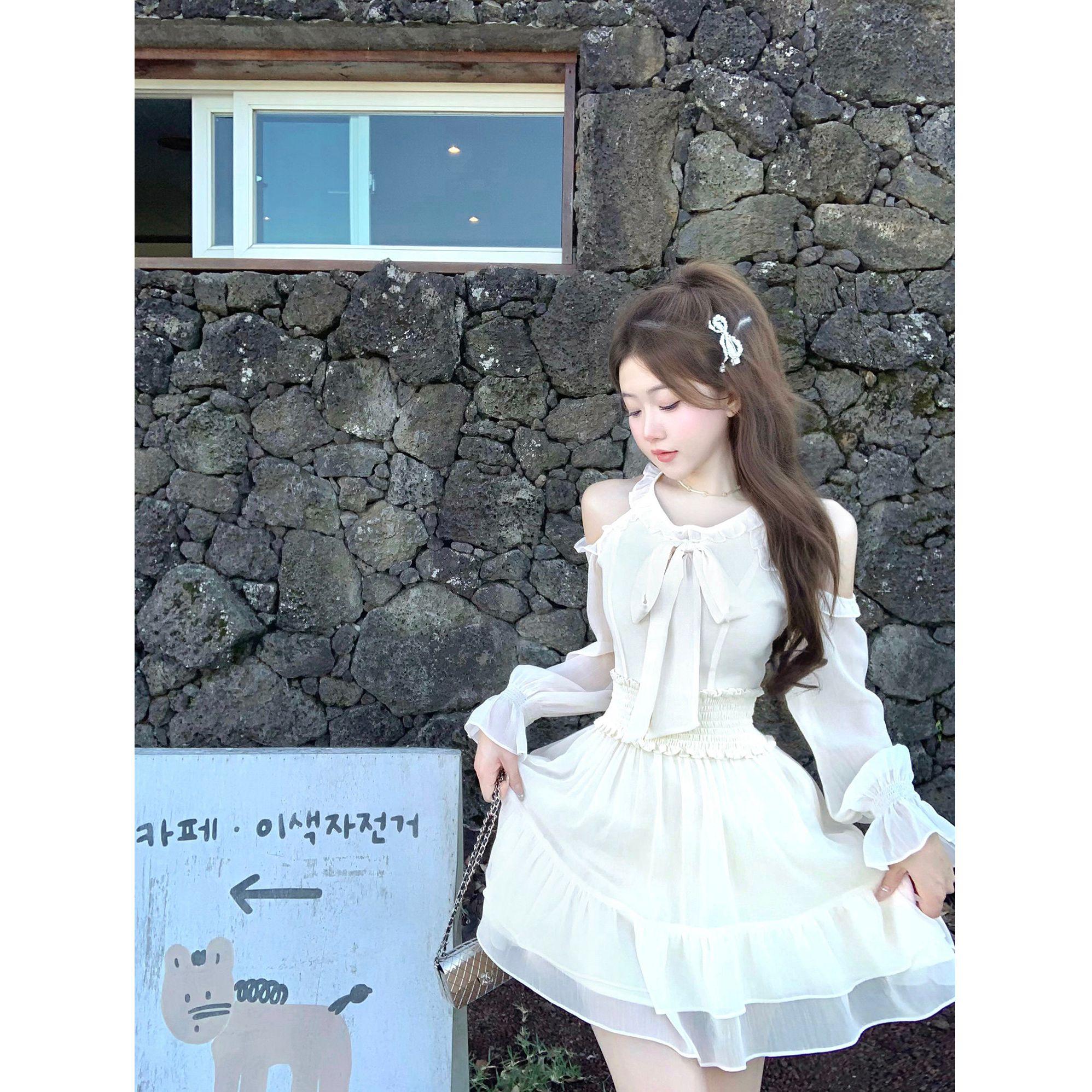 빛 요리 한 바람 착용 가져 가라. 전체 집합 봄 점프 슈트 치마 몸매 가꾸기 슬림해 보이는 오픈 가디건 슬립 반신 스커트 세 조각 세트 여성
