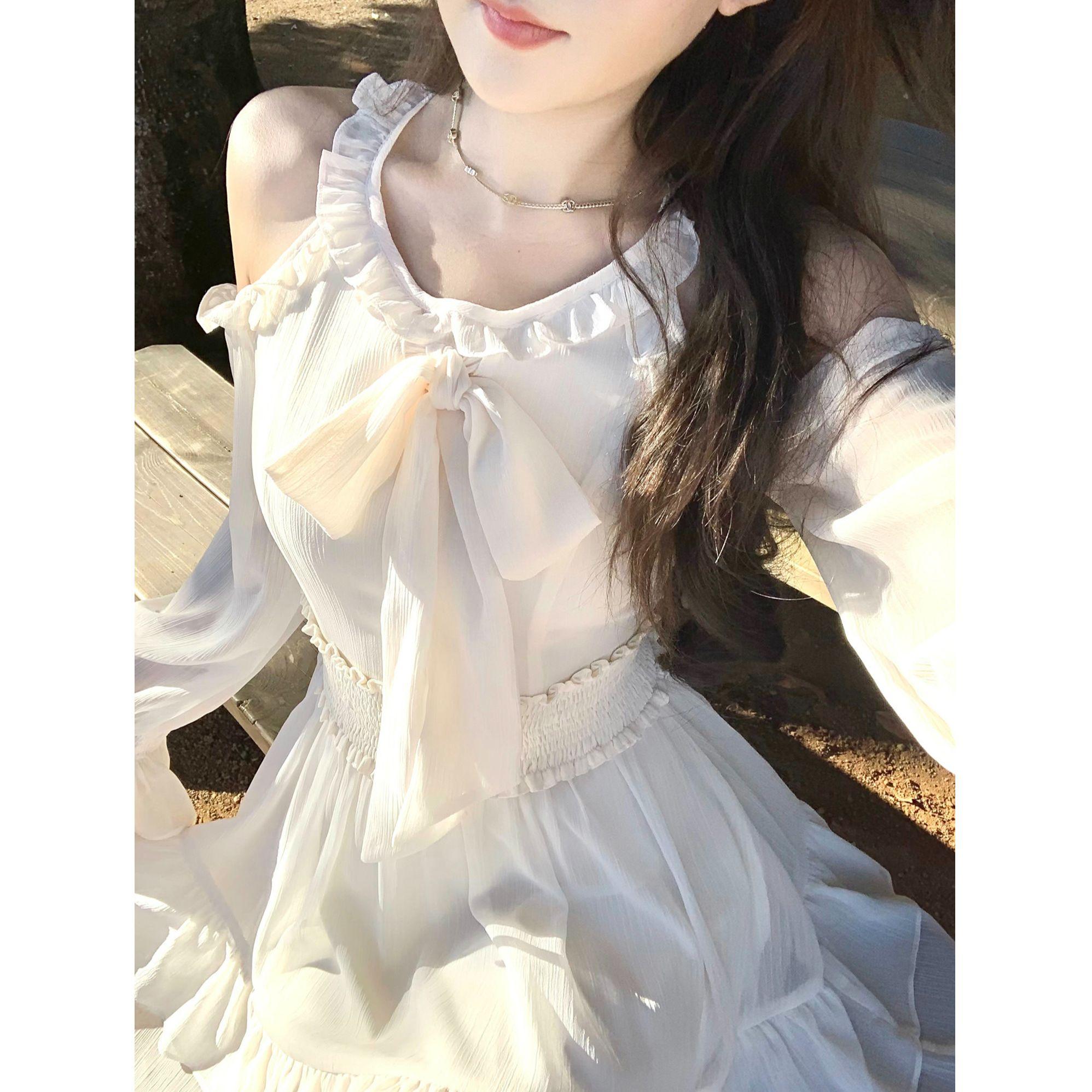 빅 사이즈 화이트 발레 바람 튜브탑 허리 수축 예복 짧은 순수한 욕망 레이스 슬립 드레스