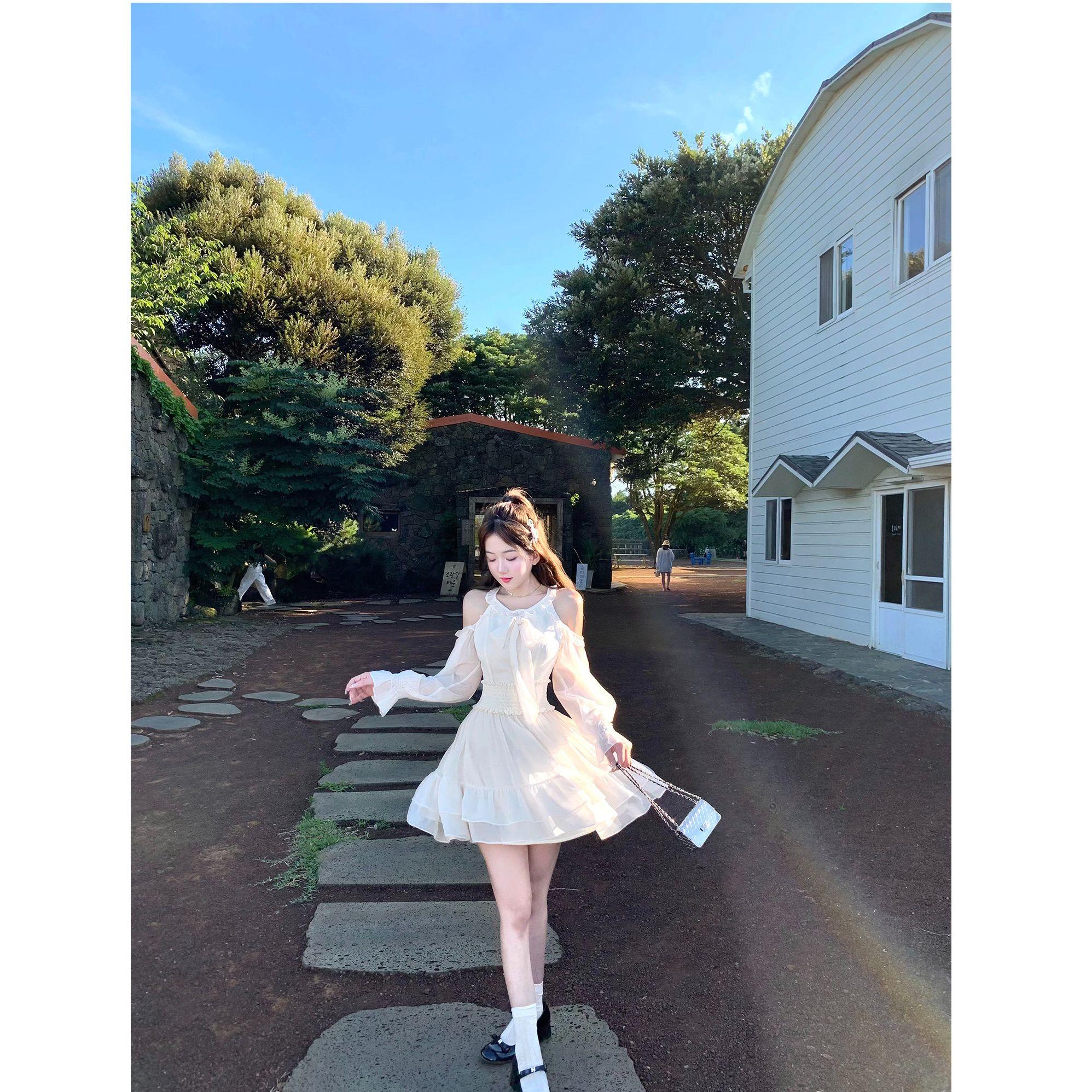 빅 사이즈 여성 의류 순수한 욕망 달콤한 스타일 나비 매듭 여성 드레스 허리 수축 슬림해 보이는 미니 스커트 예복