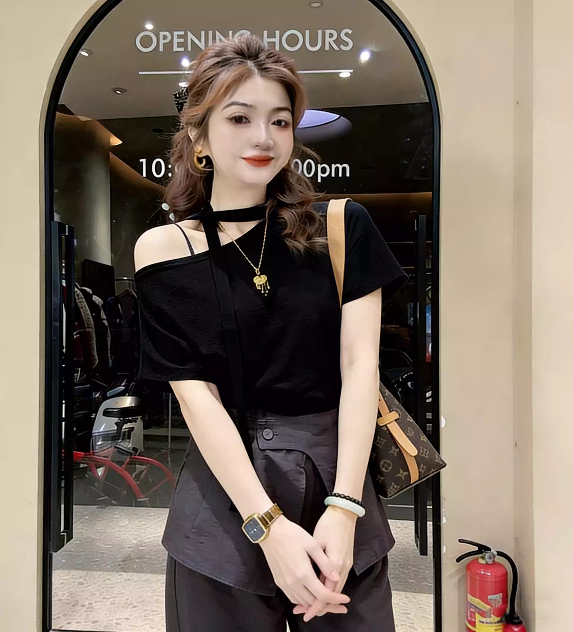 한 부서 품격 작은 대중 아니요 명중 섹션 검정색 오프숄더 긴팔 티셔츠 여성 의류 2026 봄 여름 새로운 그레이트 봐. 의류