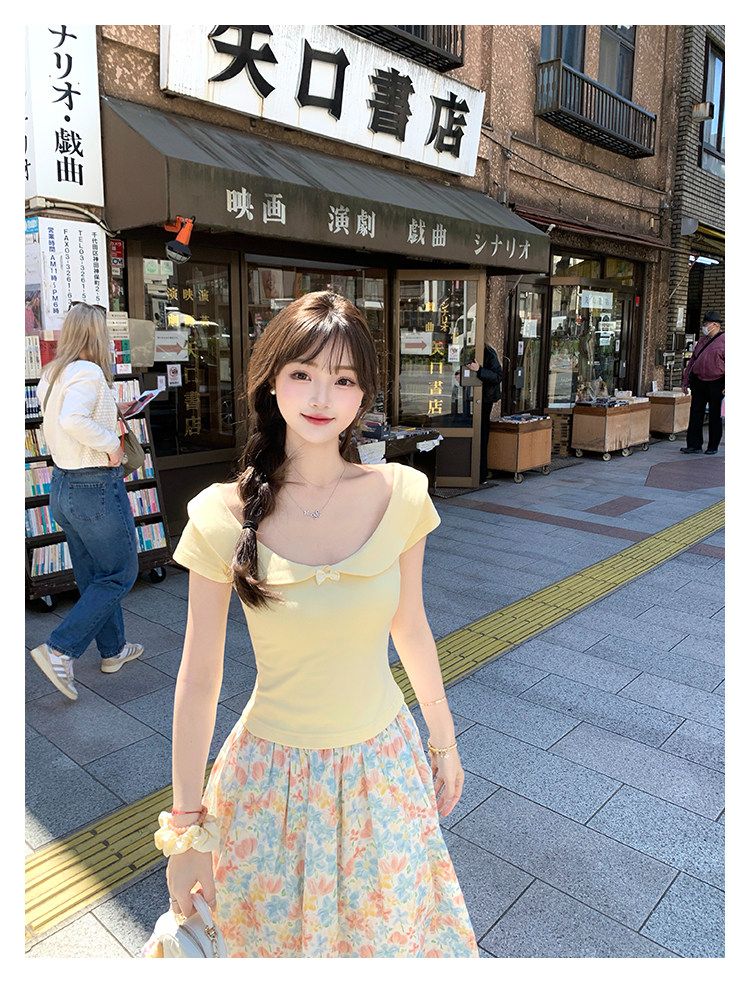 초기 꿈 pokemeng 쇼 와 doll 센스 대 베이비 칼라 나비 매듭 소녀 센스 일본식 바람 쇼트 스타일 티셔츠 다용도