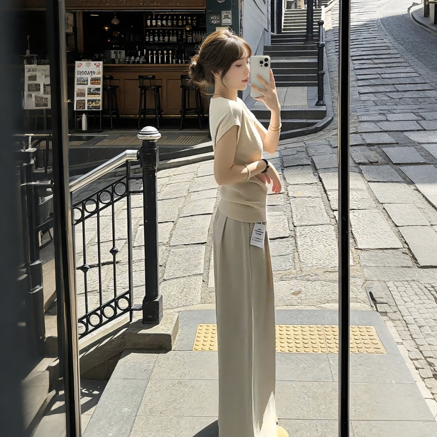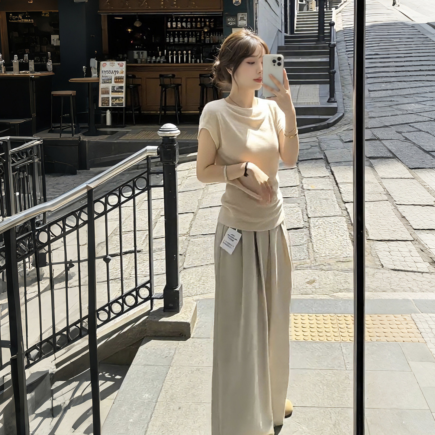 여름 코디 전체 집합 빅 사이즈 지방 mm 쉬폰 반팔 셔츠 와이드 레그 팬츠 한 부서 슈퍼 화재 투피스 슈트 여성