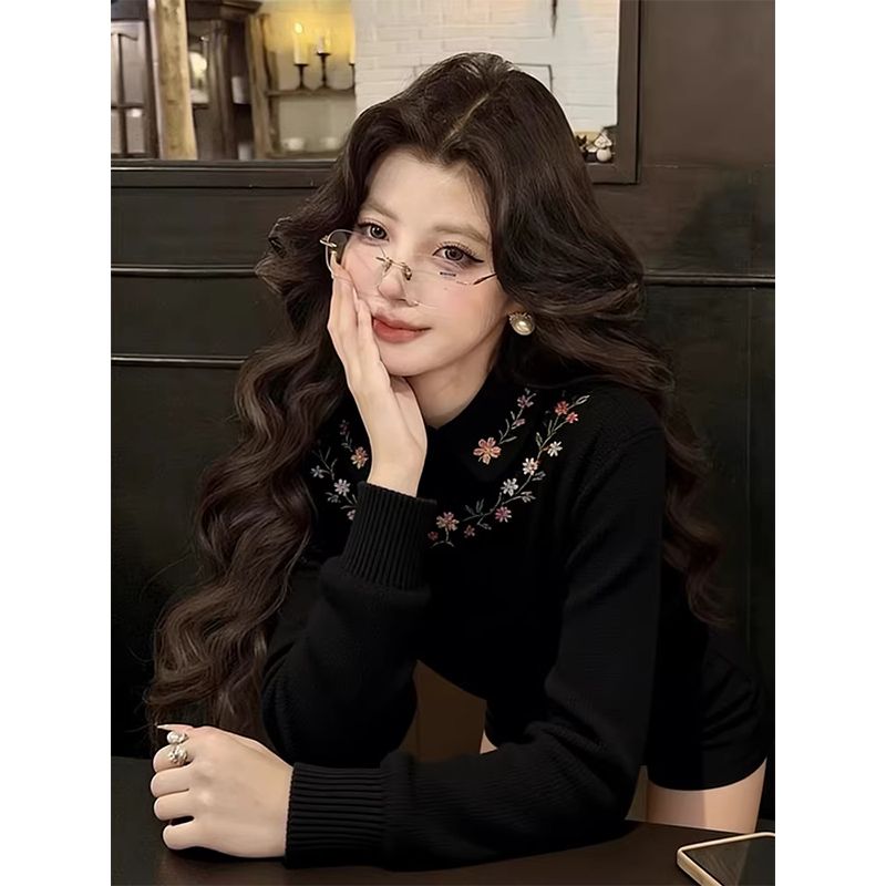 한 부서 품격 작은 대중 아니요 명중 섹션 검정색 오프숄더 긴팔 티셔츠 여성 의류 2026 봄 여름 새로운 그레이트 봐. 의류