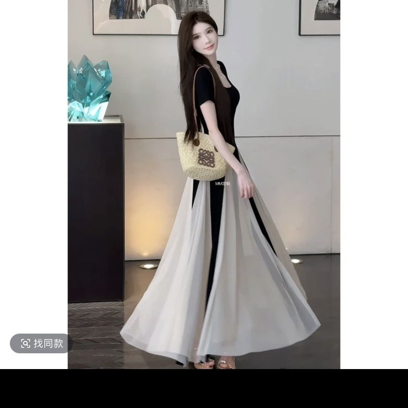 슬림해 보이는 여름 드레스 프랑스식 새로운 패치워크 디자인 여름 센스 싸움 망사 드레스 품격 치마