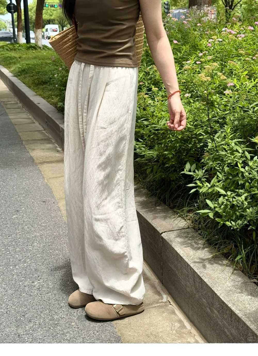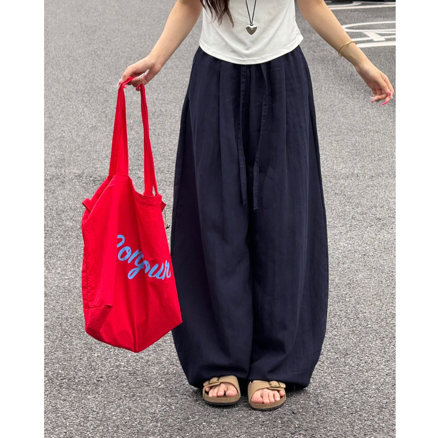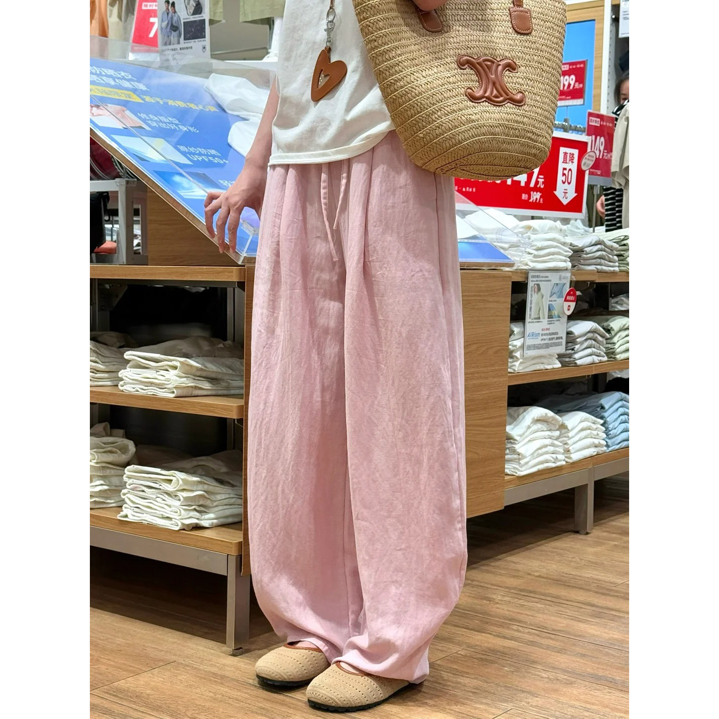 아마 모통이 칼 바지 여성 여름 얇은 스타일 주간 실크 면 린넨 와이드 레그 팬츠 빅 사이즈 지방 mm 루즈핏 슬림해 보이는 자외선 차단 캐주얼 바지