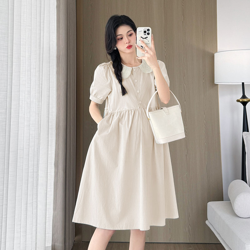 실사 여름 새로운 출산 착용 빅 사이즈 여성 의류 드레스 중간 길이 출산 스커트 루즈핏 종류 여성 치마